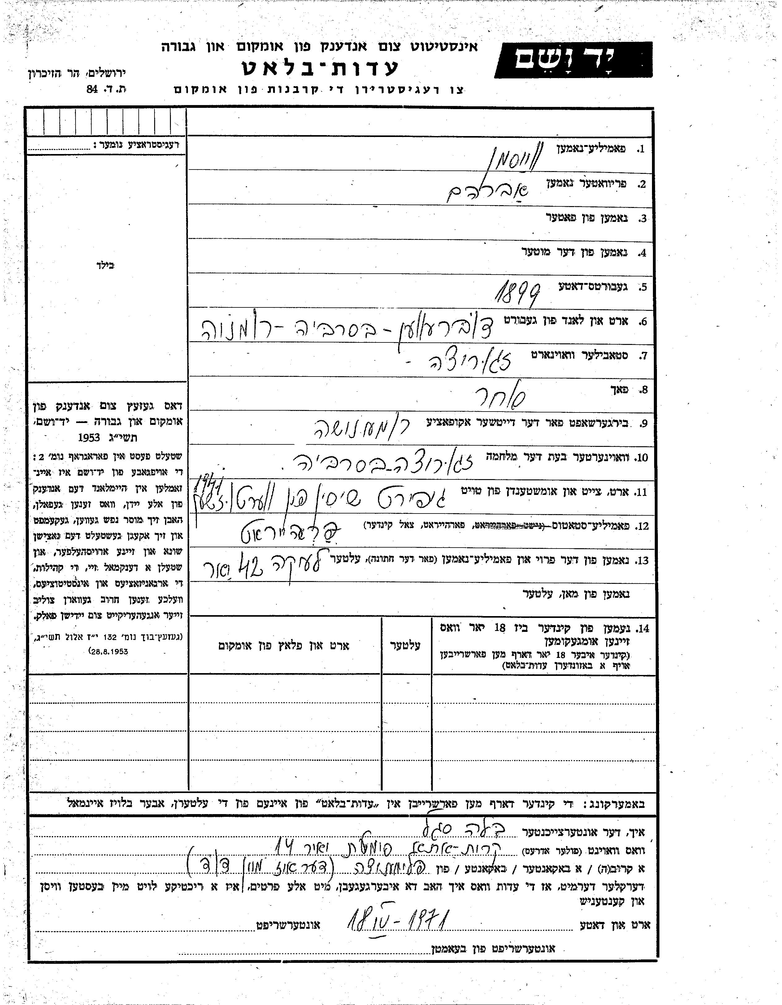 Avraham wurde in der Schoah ermordet. Todesort: Vartejeni, Rumänien im Jahr 1941.