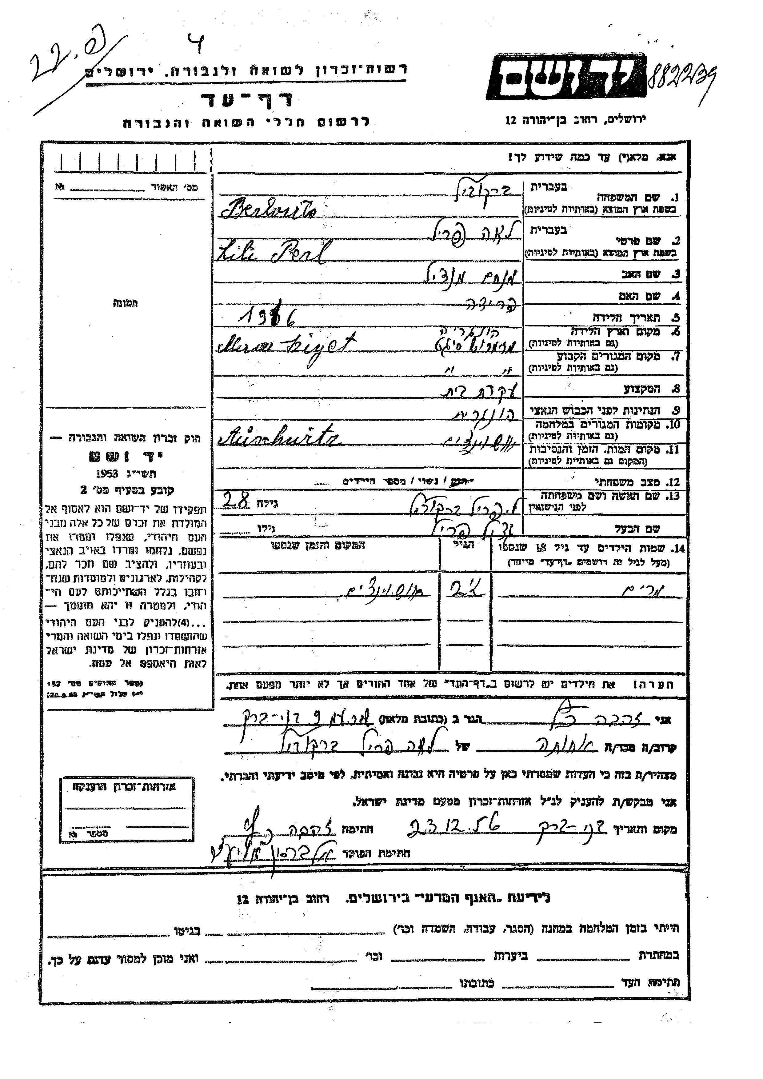 Berkovits Lili Perl Lea 1916 Marmarossziget, Rumänien Gedenkblatt