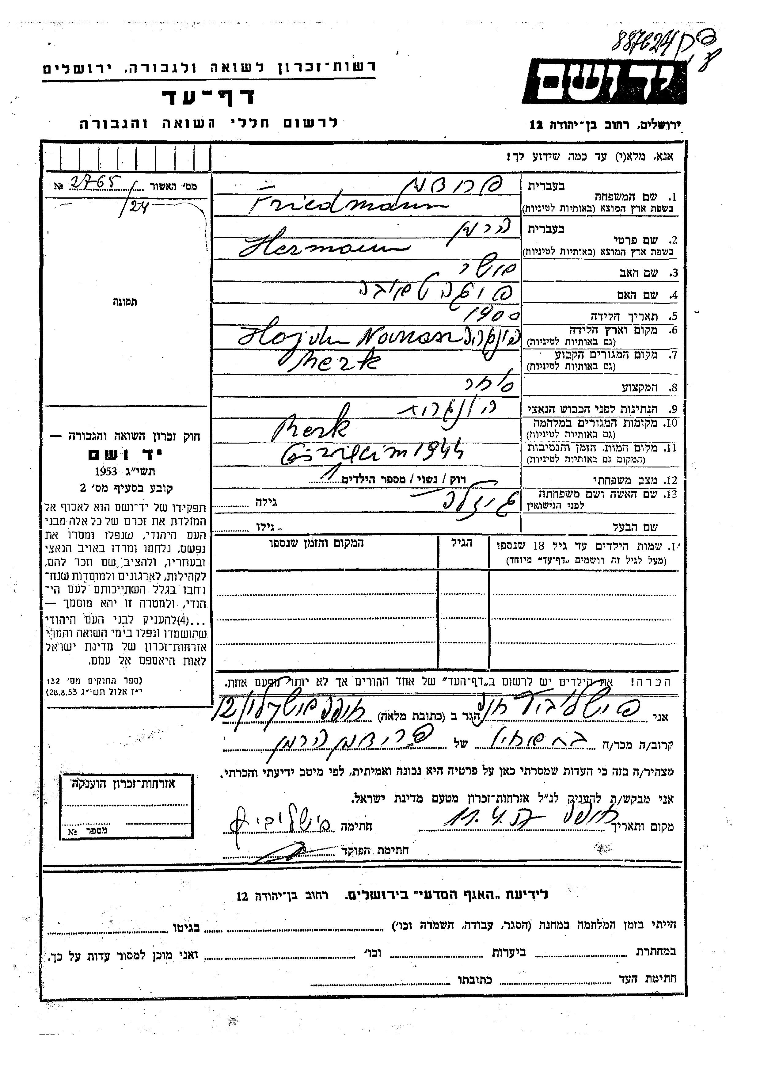 Hermann wurde in der Schoah ermordet. Todesort: Auschwitz, Polen im Jahr 1944.