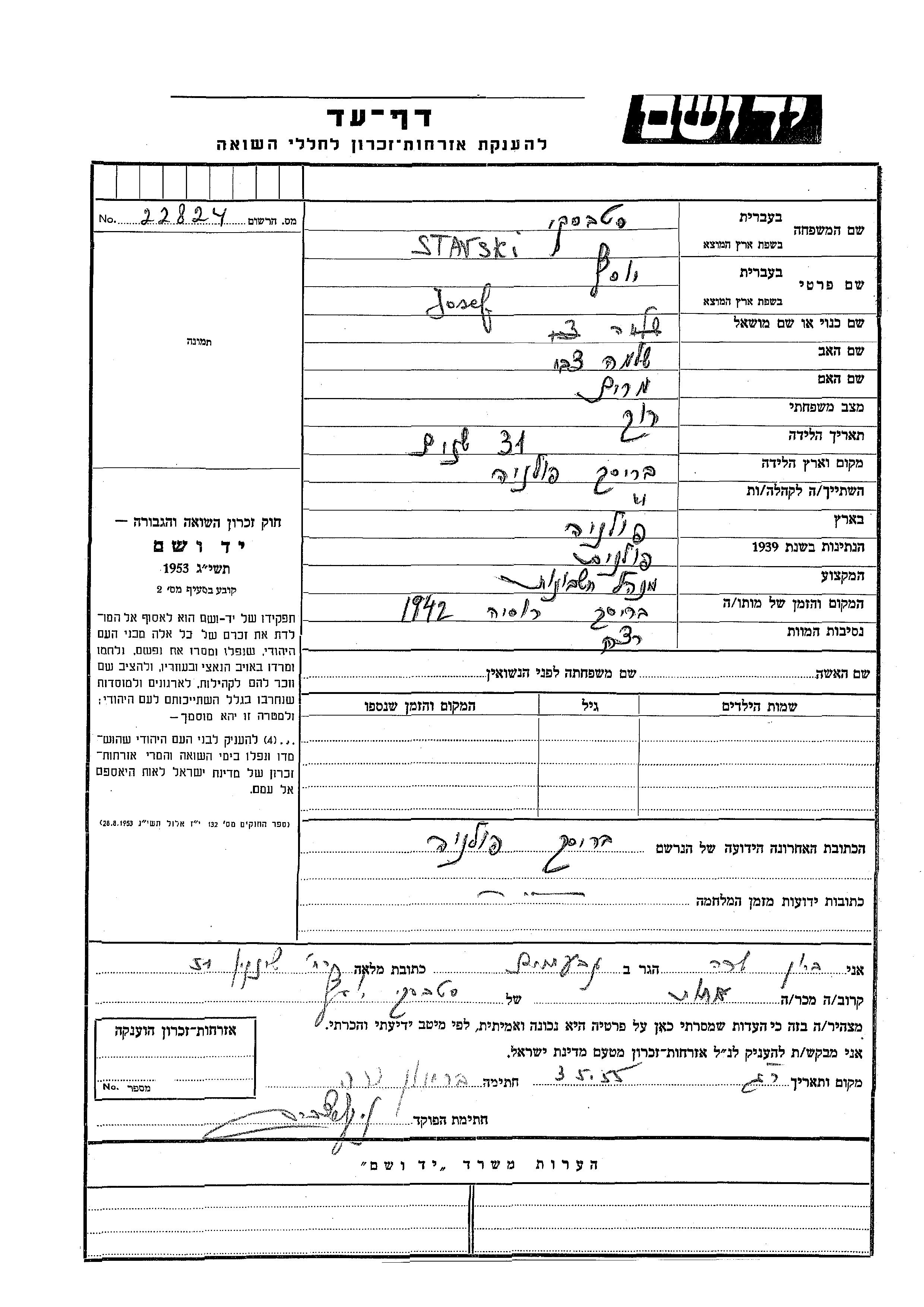 Josef Stavitzki Staviski wurde in Brzesc, Polen geboren. Er war der Sohn von Shlomo Tzvi und Miriam. Er war Buchhalter/-in. Vor dem Zweiten Weltkrieg lebte er in Brzesc, Polen. Während des Krieges war er in Brisk, Polen.