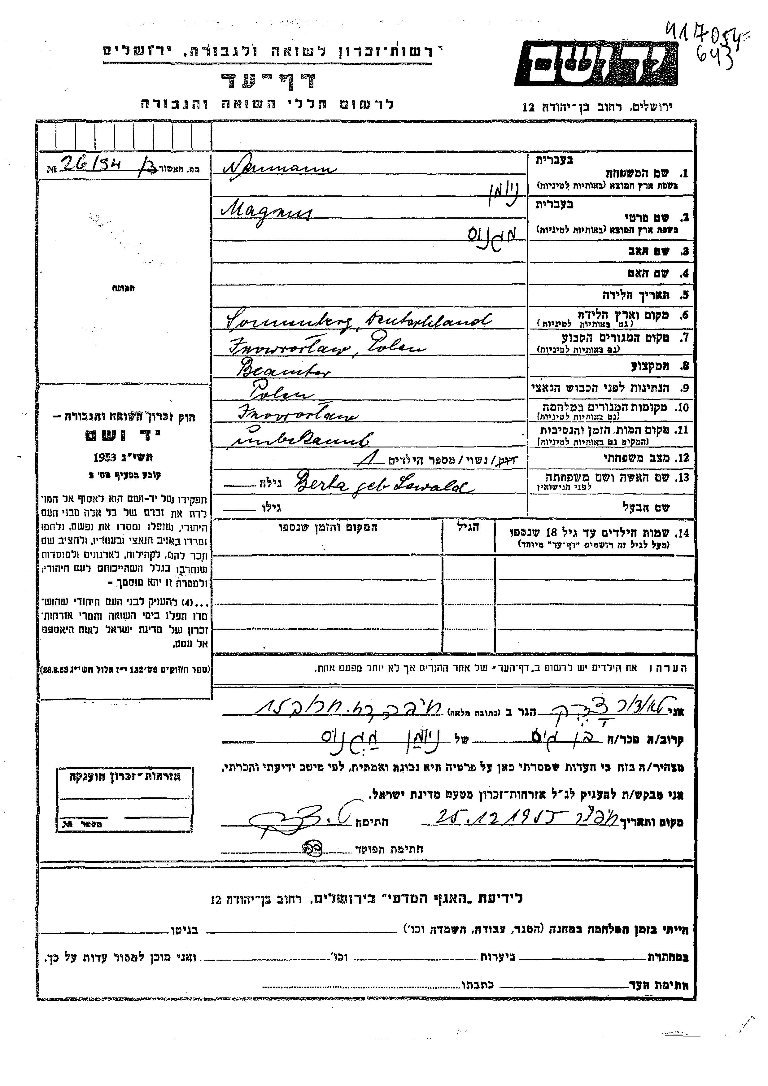 Magnus wurde in der Schoah ermordet.