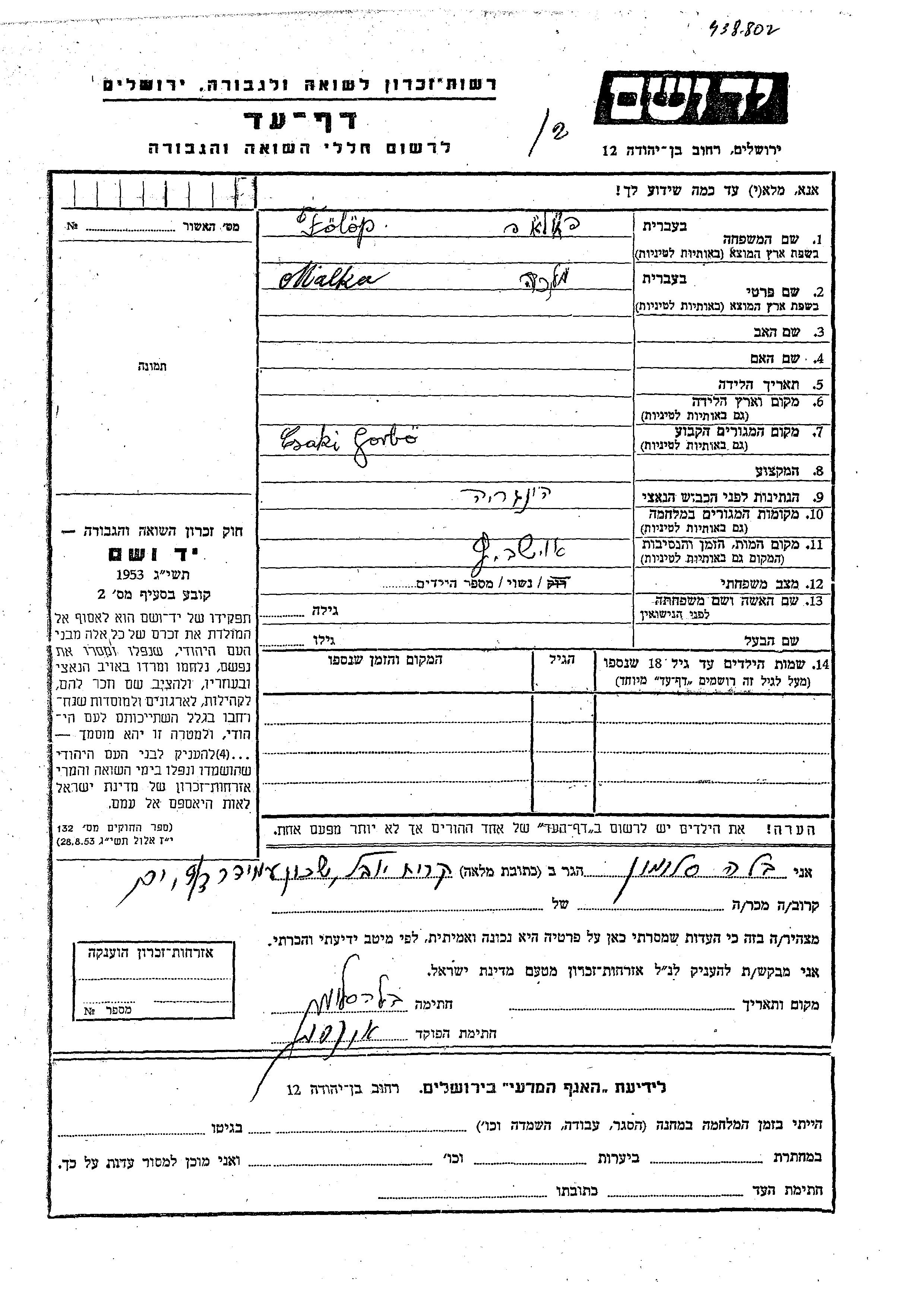 Malka Folop. Sie war Verheiratet. Vor dem Zweiten Weltkrieg lebte sie in Csakigorbo, Rumänien.