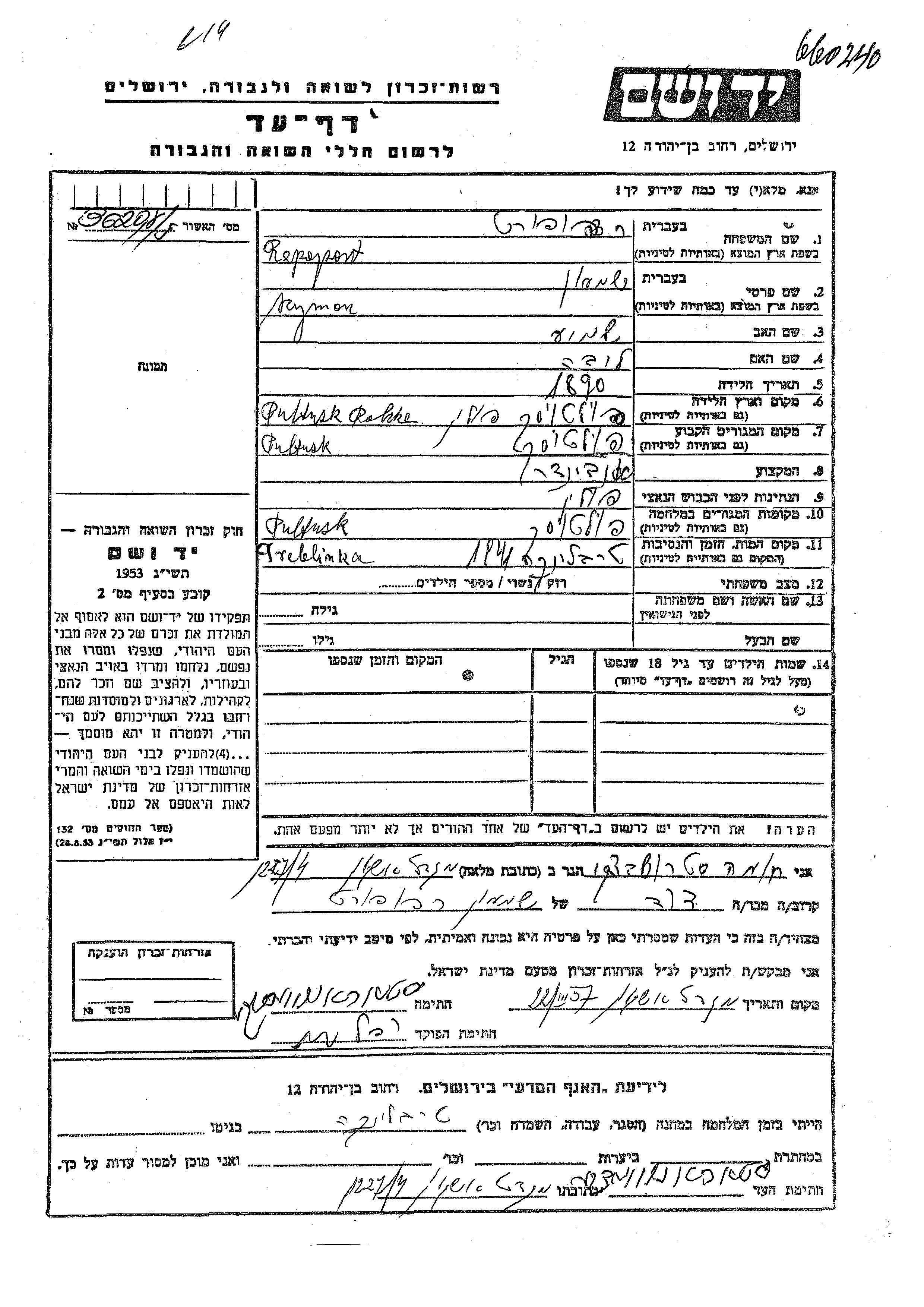Szymon wurde in der Schoah ermordet. Todesort: Treblinka, Polen im Jahr 1941.