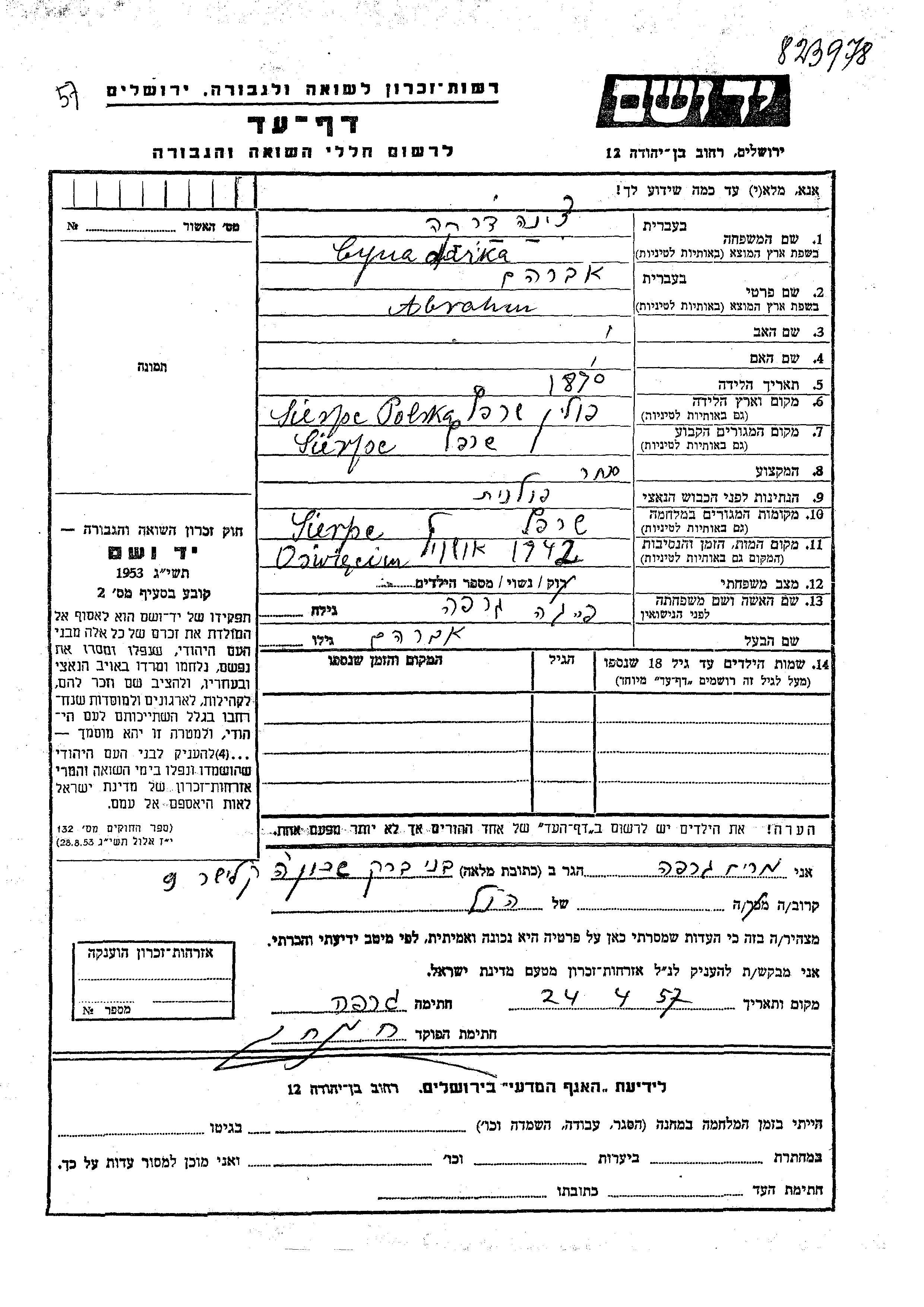 Abrahm wurde in der Schoah ermordet. Todesort: Auschwitz, Polen im Jahr 1942.