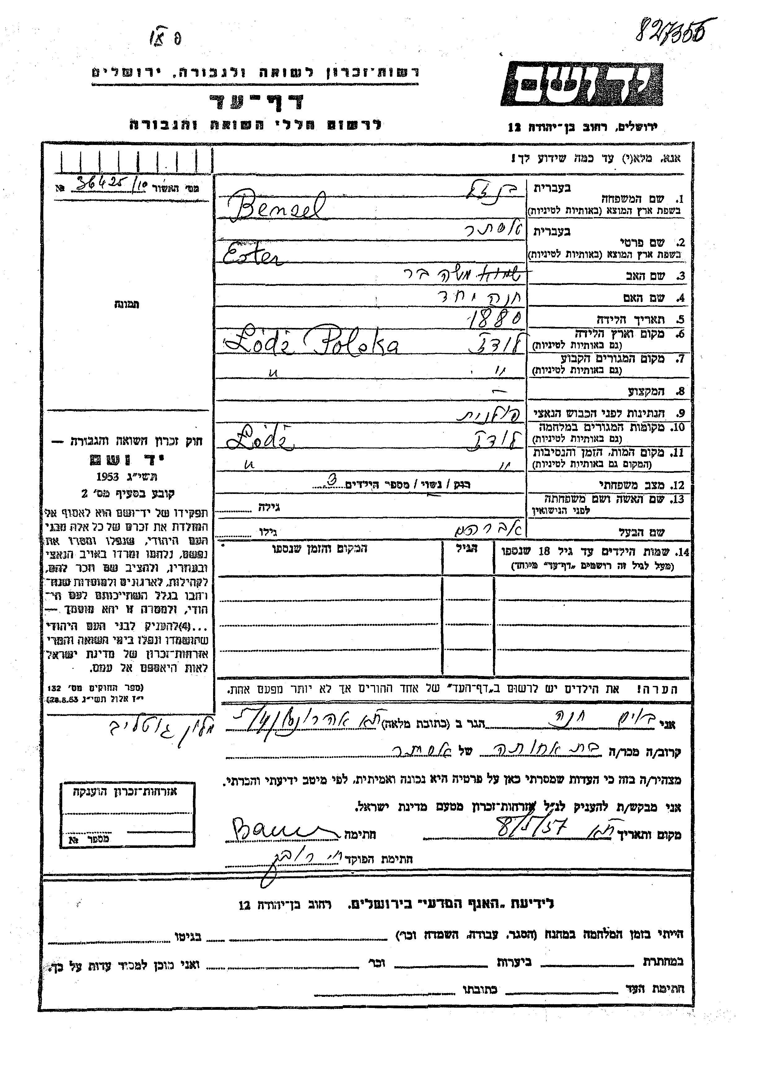Ester wurde in der Schoah ermordet. Todesort: Lodz, Polen.