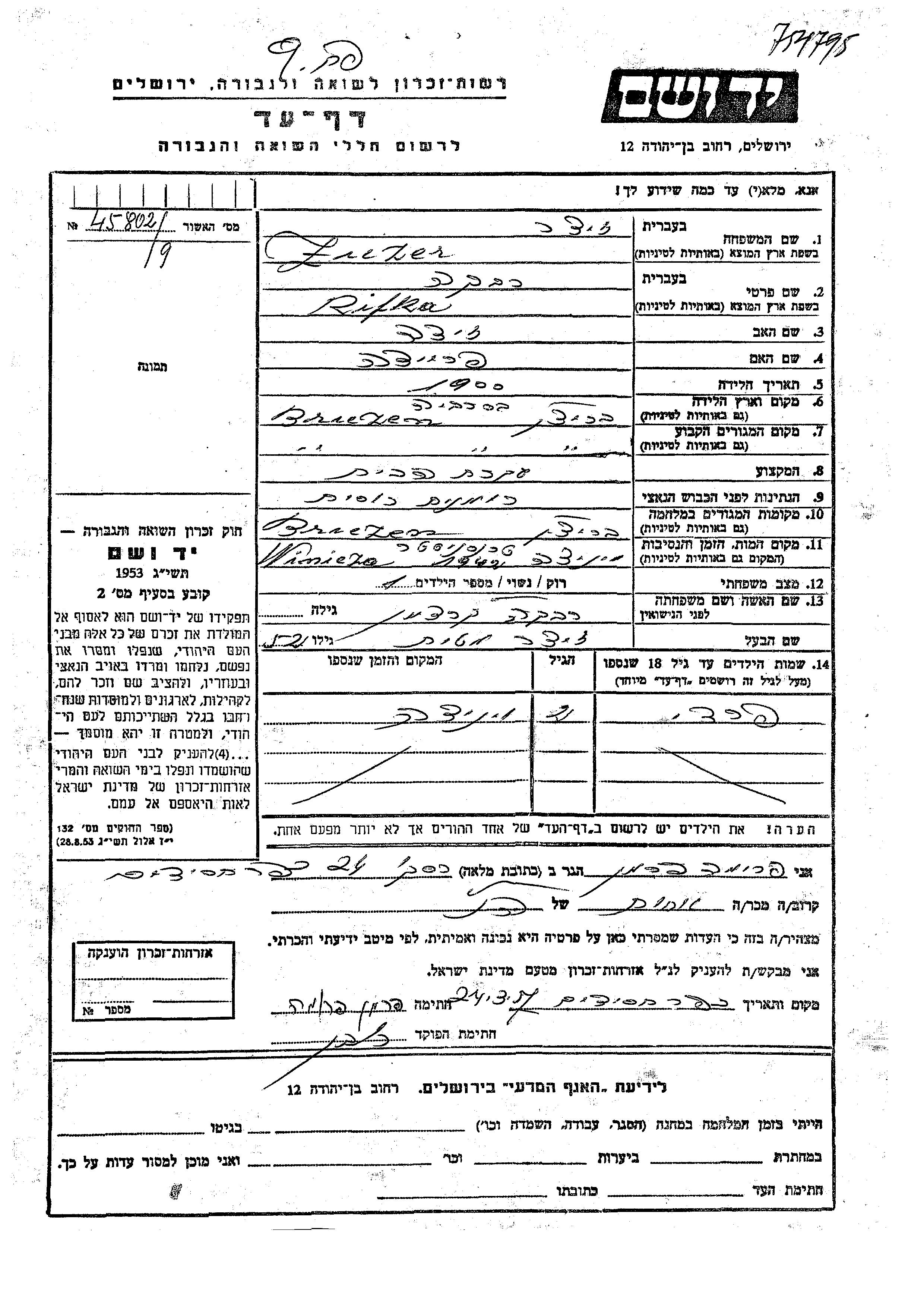 Rivka wurde in der Schoah ermordet. Todesort: Vinnitsa, Ukraine (UdSSR) im Jahr 1942.