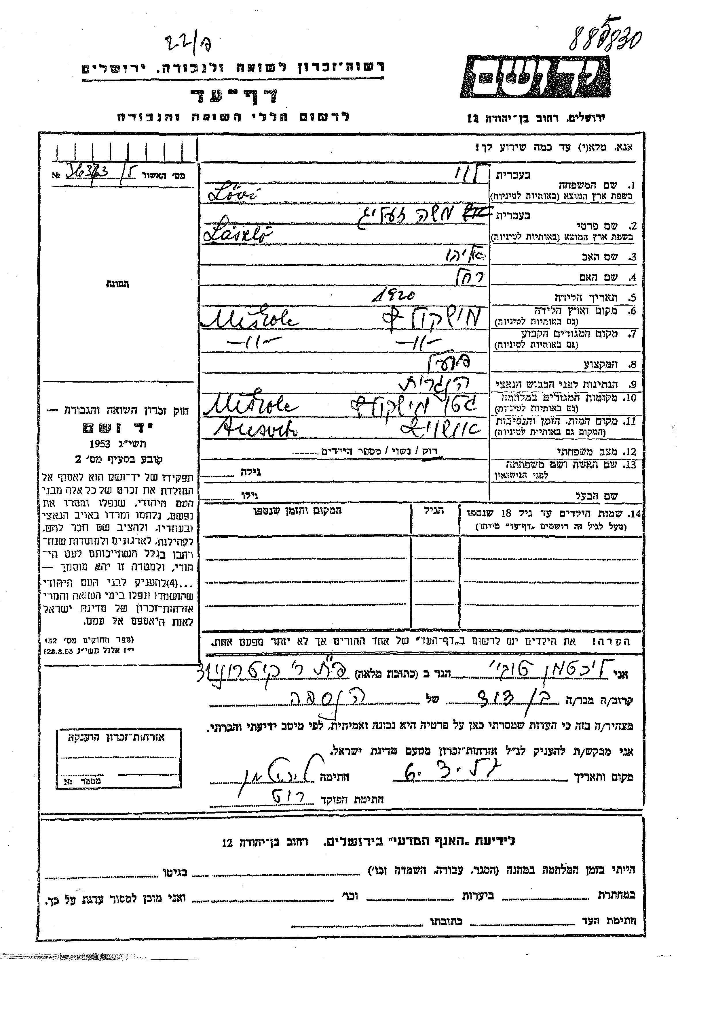 Laszlo Moshe Zelig Levi wurde im Jahr 1920 in Miszkolc, Ungarn geboren. Er war der Sohn von Eliahu und Rakhel. Er war Arbeiter/-in und Ledig. Vor dem Zweiten Weltkrieg lebte er in Miszkolc, Ungarn. Während des Krieges war er in Miszkolc, Ungarn.