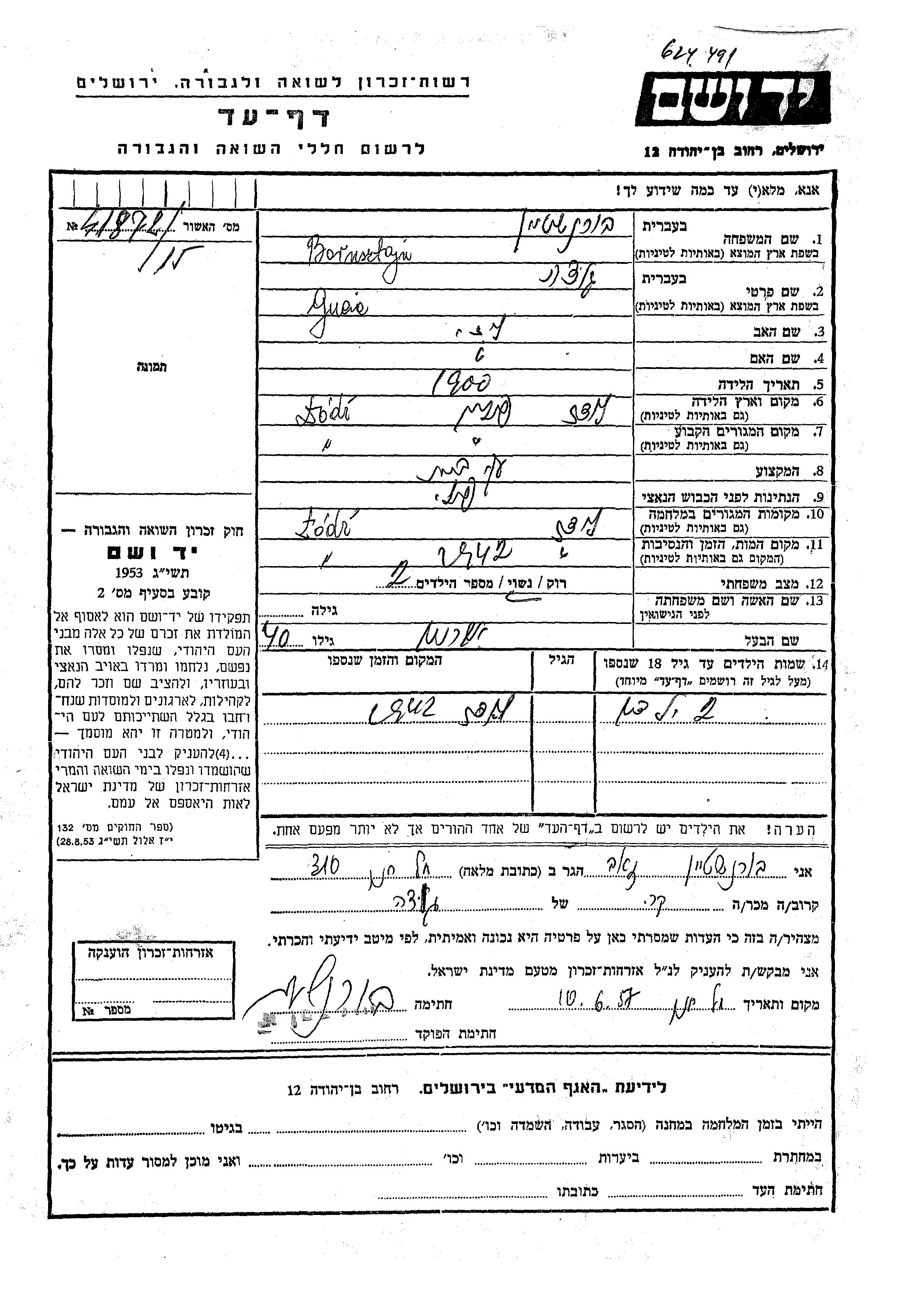 Bornsztajn Gucia Gucha 1900 Lodz, Polen Gedenkblatt