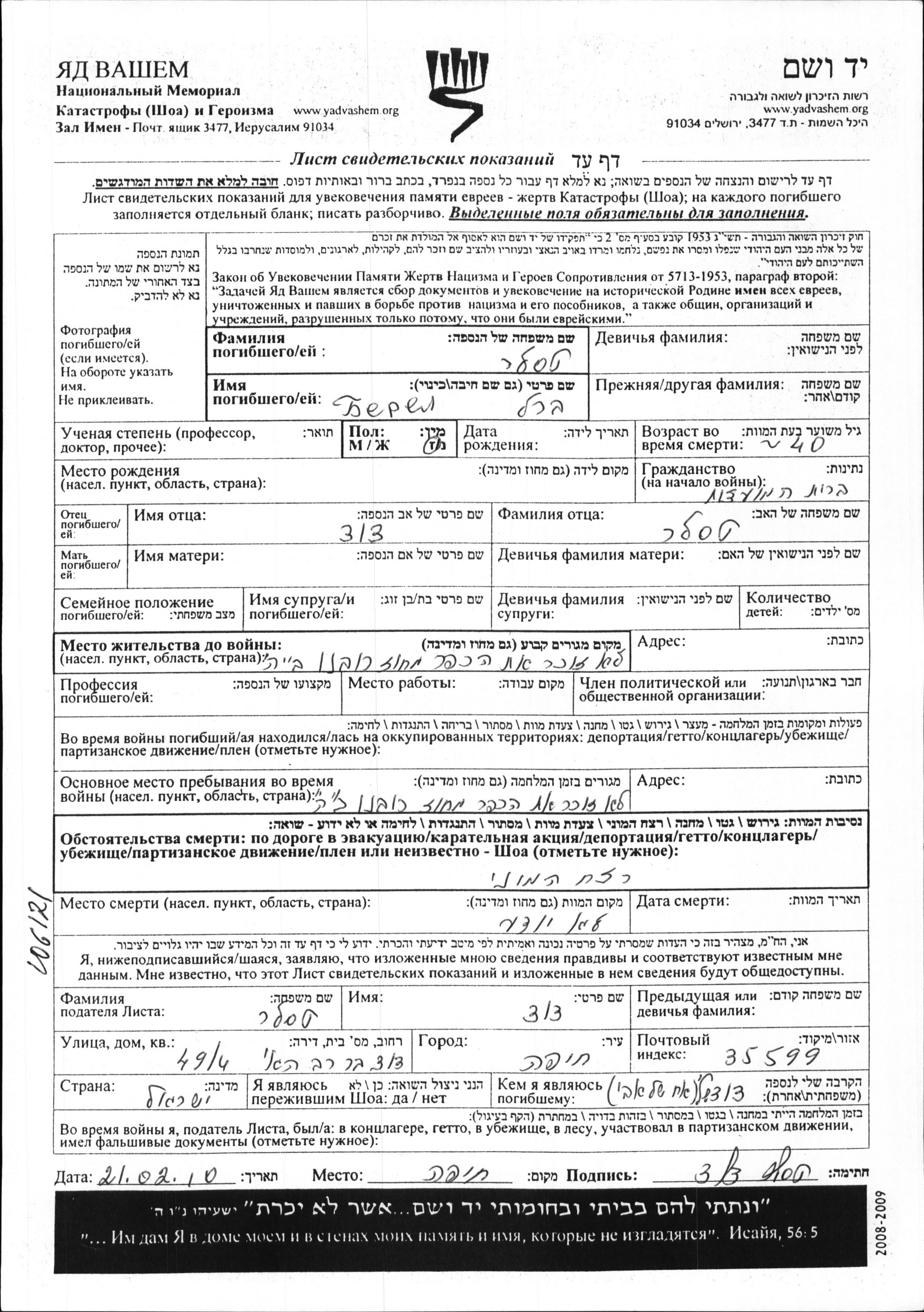 Berel Tesler wurde in Rowne, Polen geboren. Er war der Sohn von David. Vor dem Zweiten Weltkrieg lebte er in Rowne, Polen. Während des Krieges war er in Rowne, Polen.