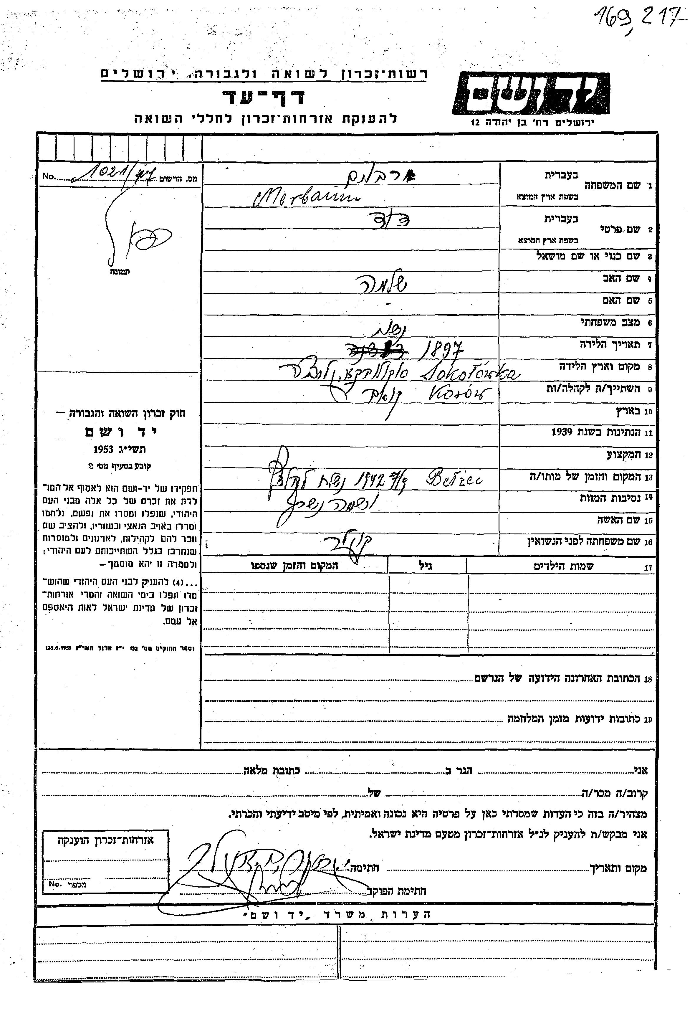 Dawid wurde in der Schoah ermordet. Todesort: Belzec, Polen im Jahr 07/1942.
