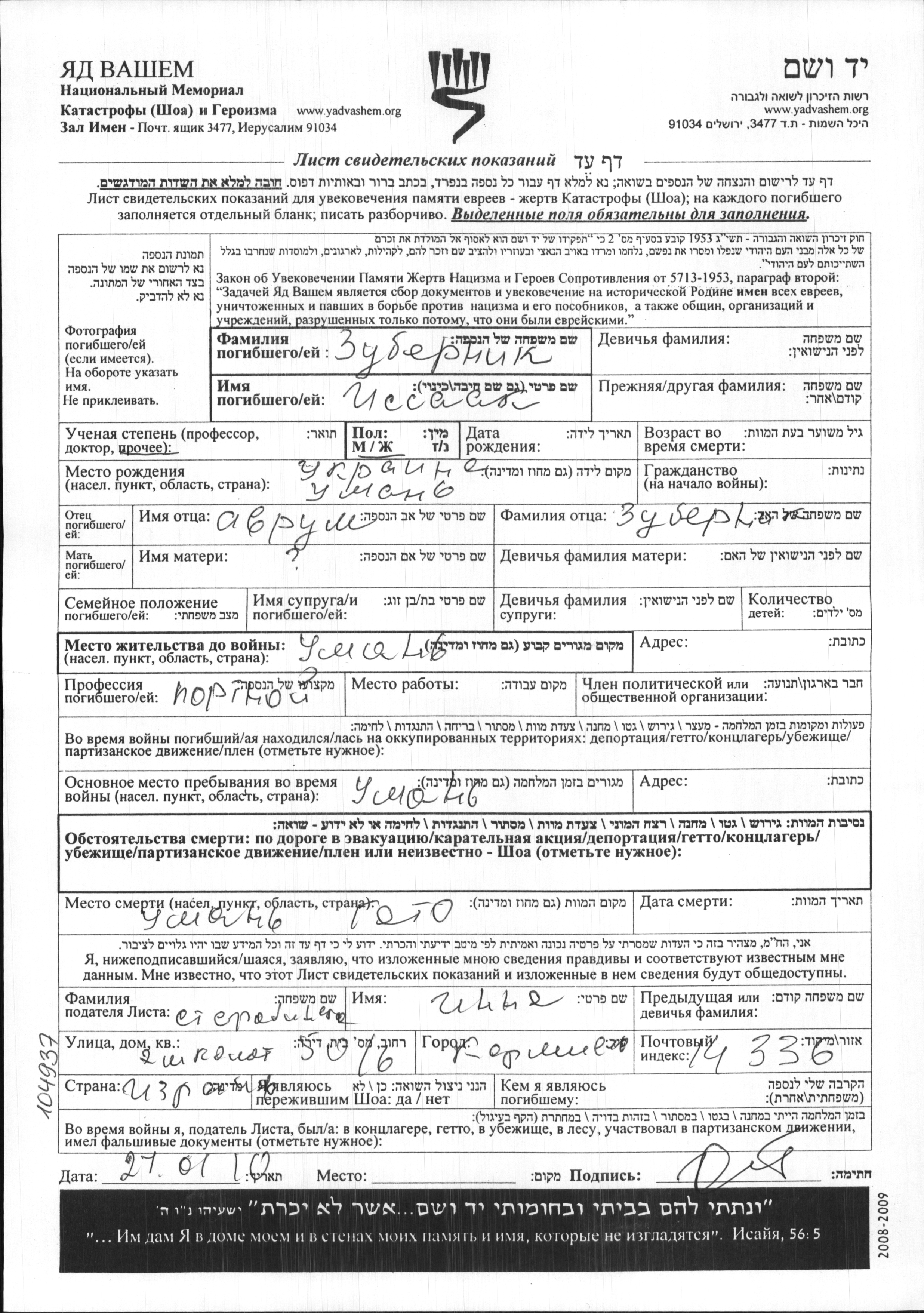 Issaak wurde in der Schoah ermordet. Todesort: Uman, Ukraine (UdSSR).