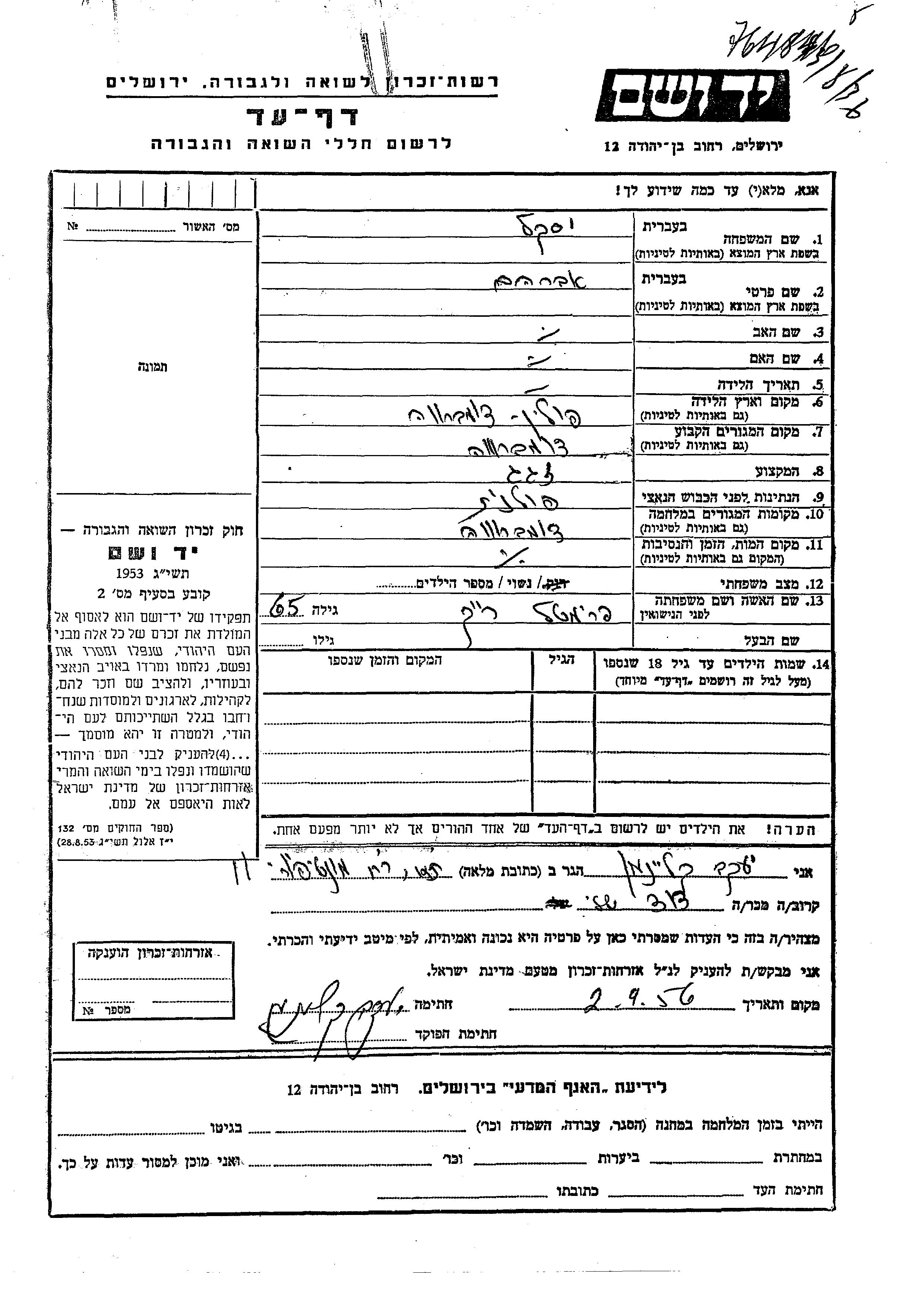 Avraham Iaskel wurde in Dąbrowa, Polen geboren. Er war Glaser/-in und mit Frimtel, geb. Reikh Verheiratet. Vor dem Zweiten Weltkrieg lebte er in Dąbrowa, Polen. Während des Krieges war er in Dąbrowa, Polen.