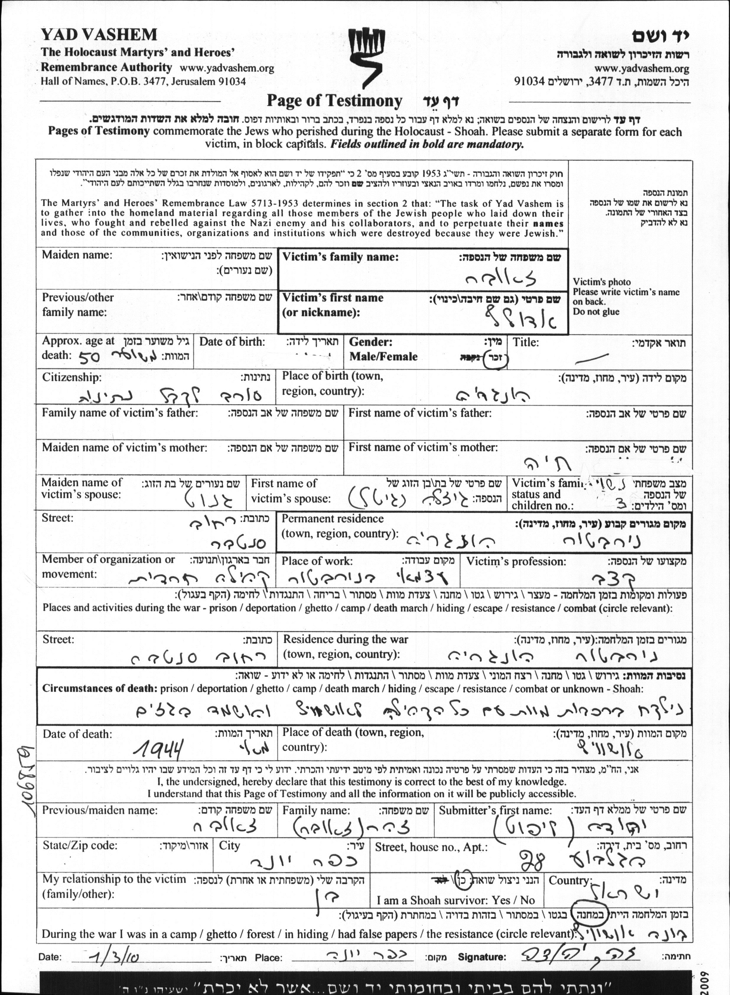 Adolf Zauber wurde in Ungarn geboren. Er war der Sohn von Chaia. Er war Metzger/-in und mit Gitzla Gitel, geb. Genut Verheiratet. Vor dem Zweiten Weltkrieg lebte er in Nirbator, Ungarn. Während des Krieges war er in Nirbator, Ungarn.