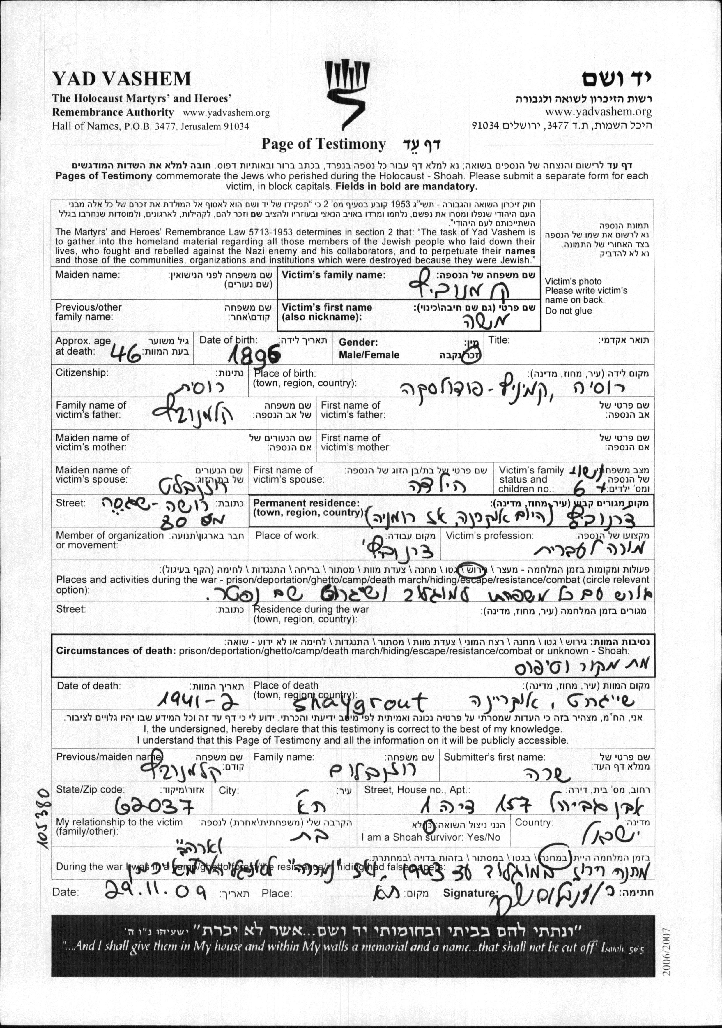 Moshe wurde in der Schoah ermordet. Todesort: Shargorod, Ukraine (UdSSR) im Jahr 1941.