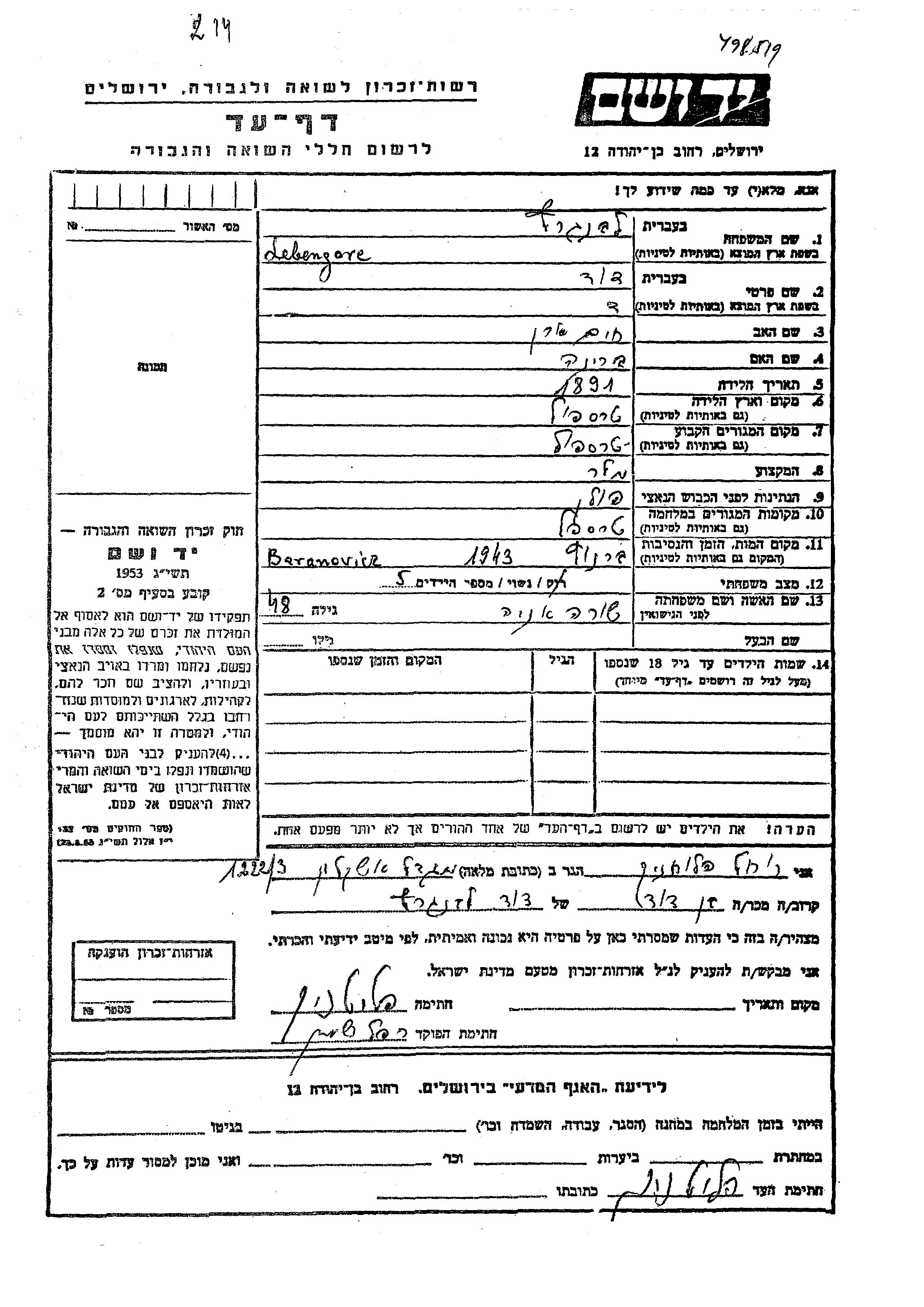 David wurde in der Schoah ermordet. Todesort: Baranowicz, Polen im Jahr 1943.