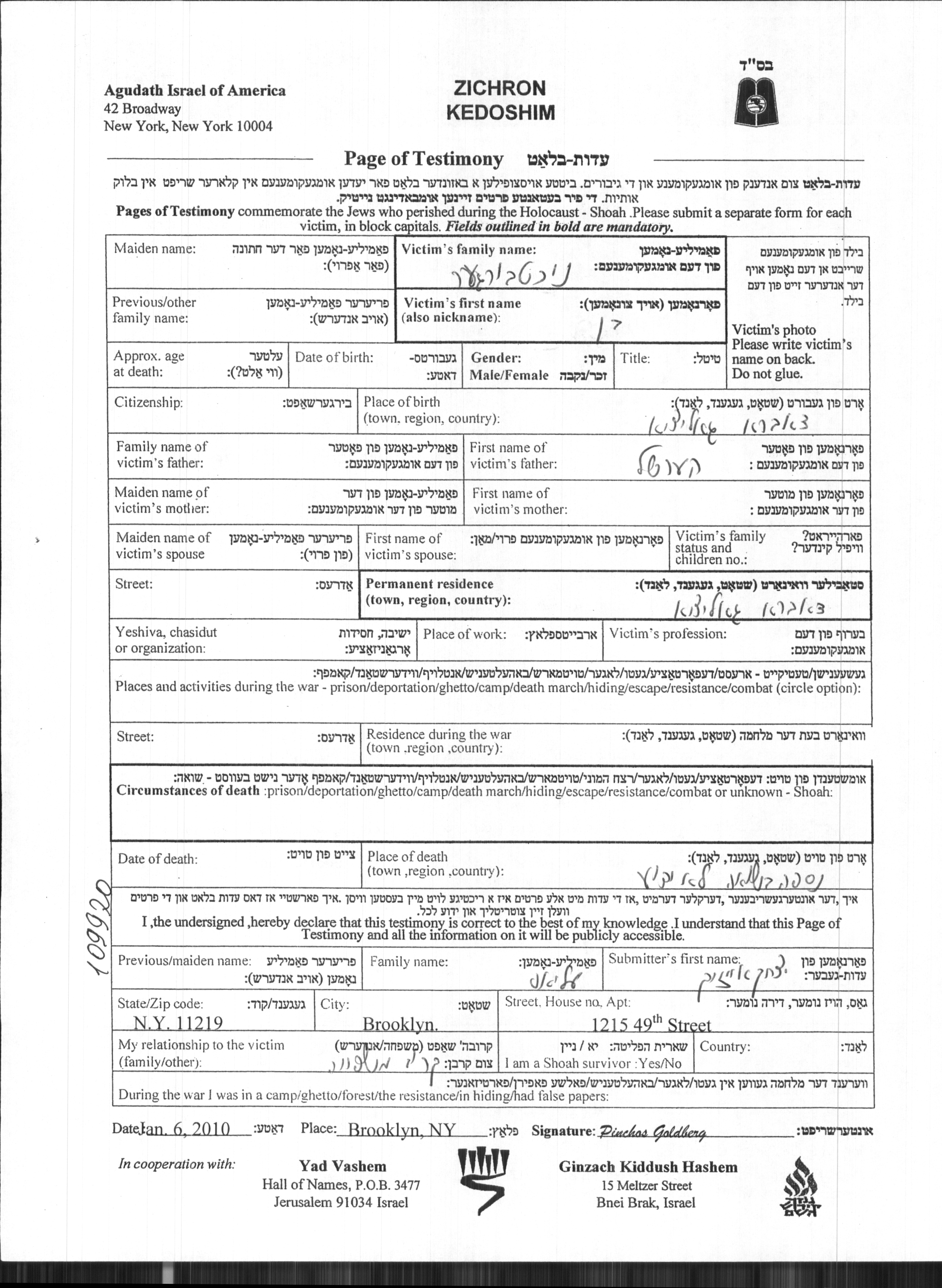 Vorname unbekannt Nikhtberger wurde in Dobra, Polen geboren. Er war der Sohn von Hershl. Vor dem Zweiten Weltkrieg lebte er in Dobra, Polen.