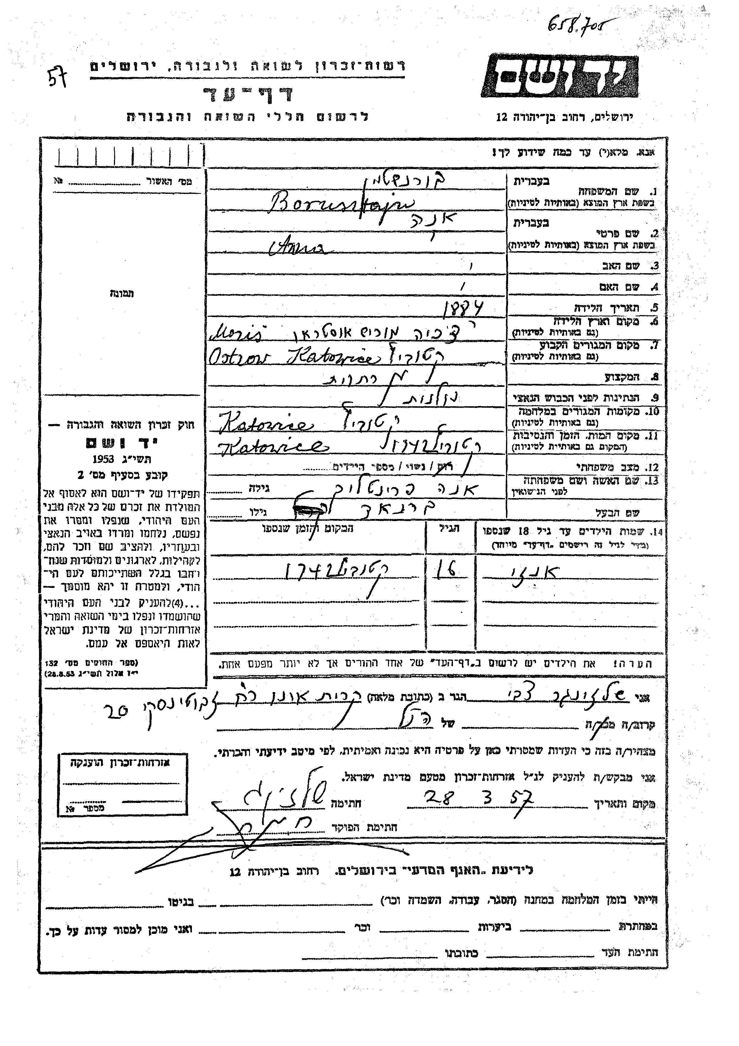 Anna Bornsztajn, geb. Froindlikh wurde im Jahr 1884 in Maehrisch Ostrau, Tschechoslowakei geboren. Sie war Hausfrau und mit Bernad Verheiratet. Vor dem Zweiten Weltkrieg lebte sie in Katowice, Polen. Während des Krieges war sie in Katowice, Polen.