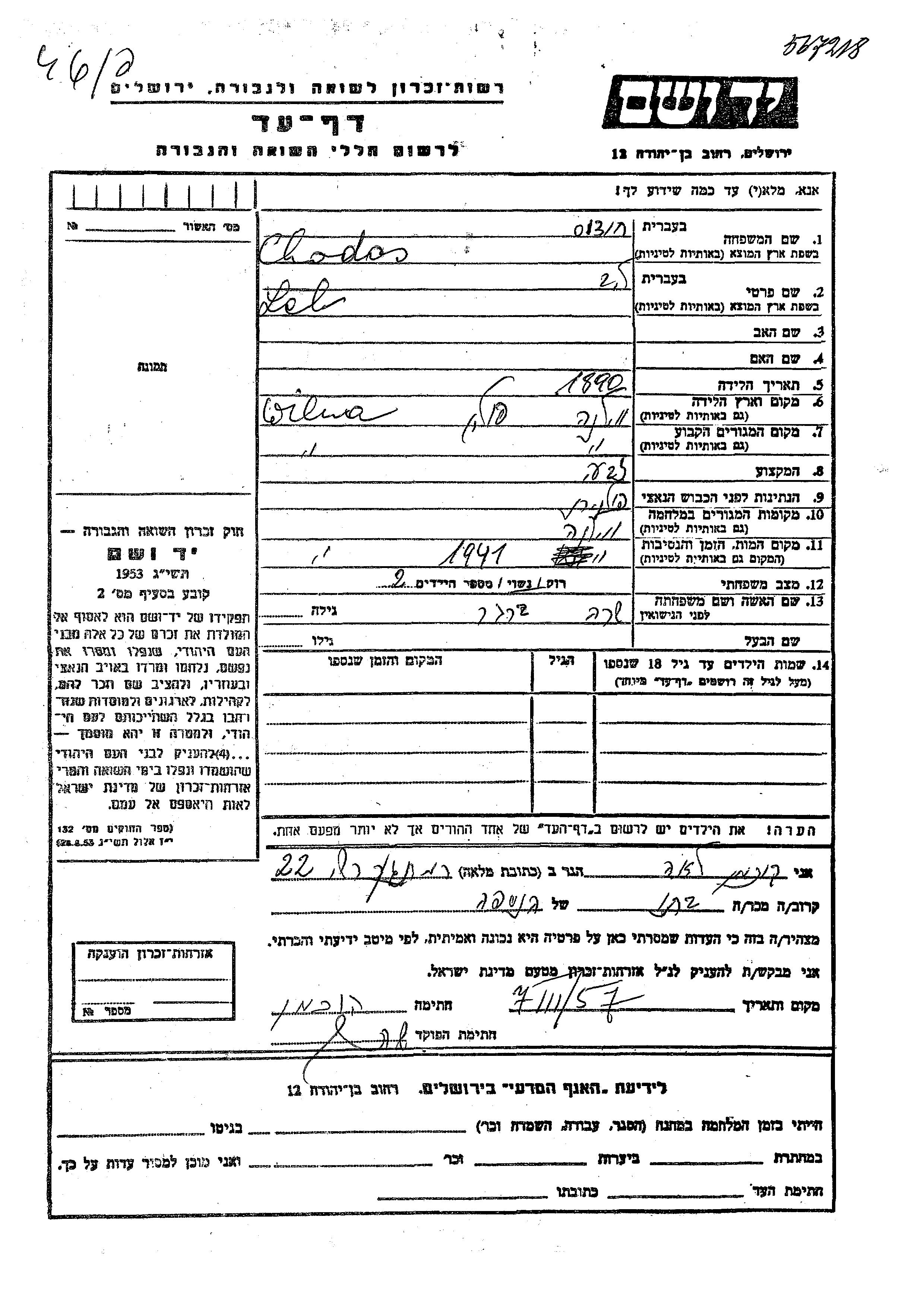 Leb Lev Chodos Hadas wurde im Jahr 1890 in Wilna, Polen geboren. Er war Anstreicher/-in und mit Sara, geb. Berger Verheiratet. Vor dem Zweiten Weltkrieg lebte er in Wilna, Polen. Während des Krieges war er in Wilna, Polen.
