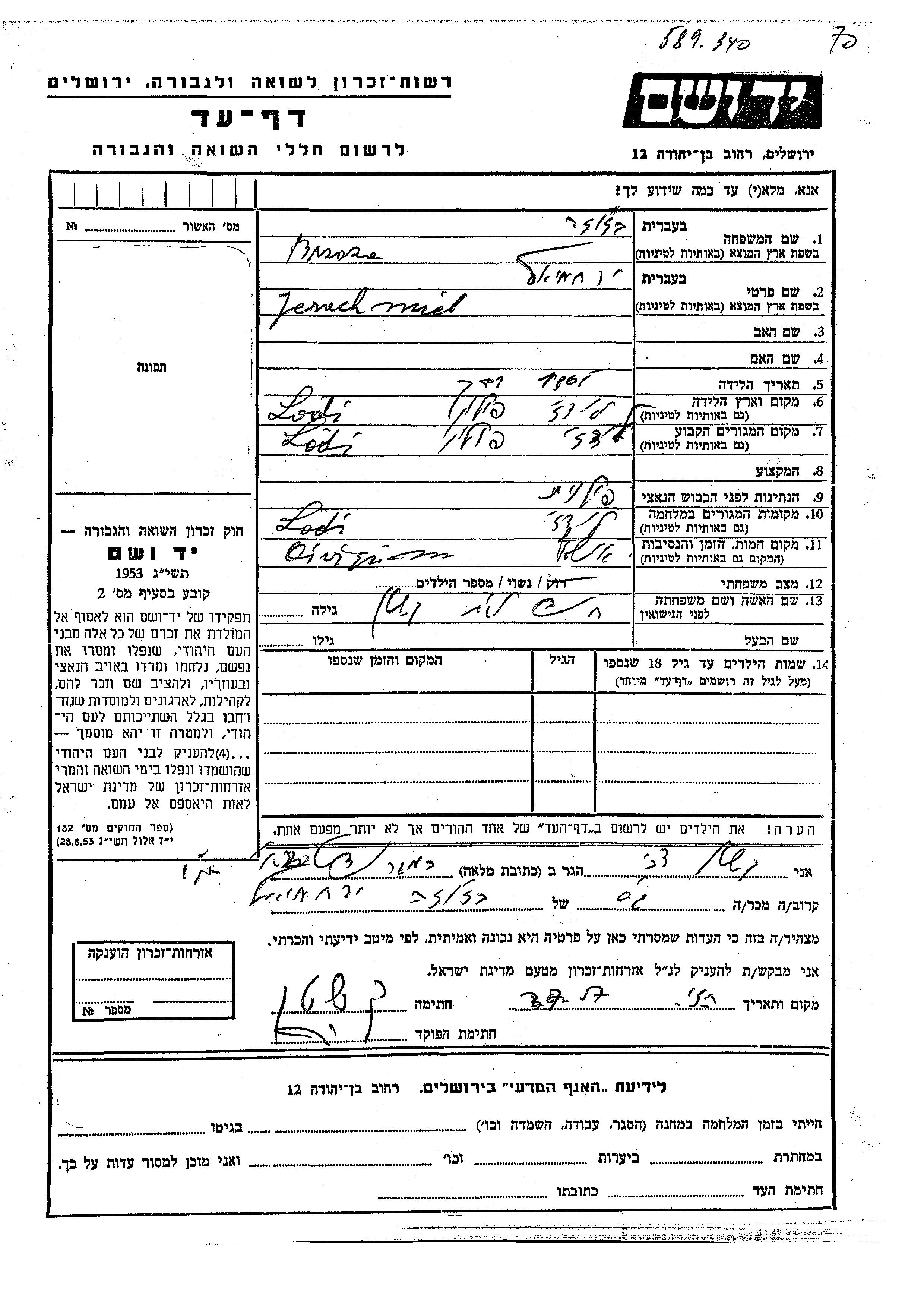 Jerachmiel wurde in der Schoah ermordet. Todesort: Auschwitz, Polen.