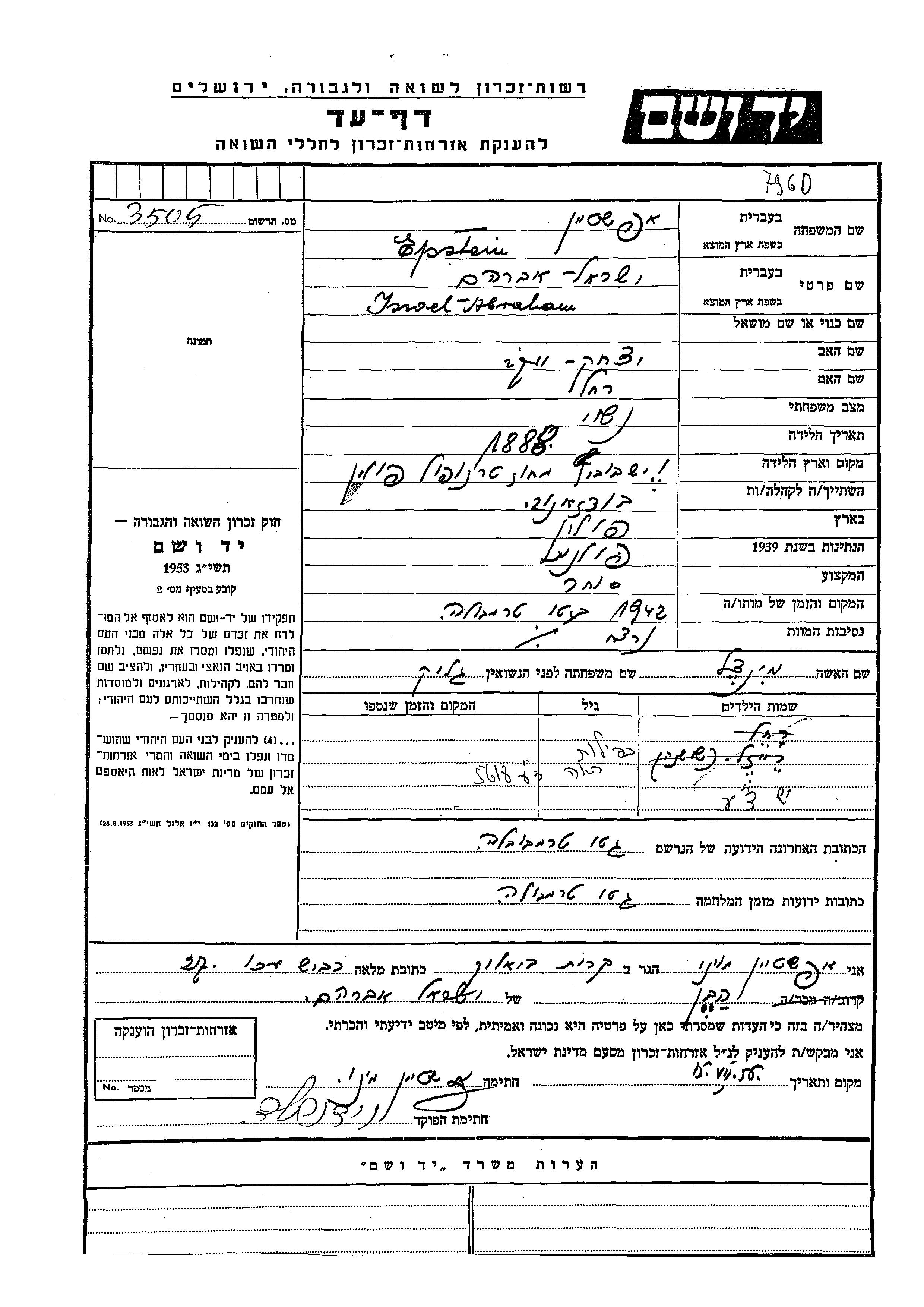 Israel Abraham wurde in der Schoah ermordet. Todesort: Trembowla, Polen im Jahr 1942.