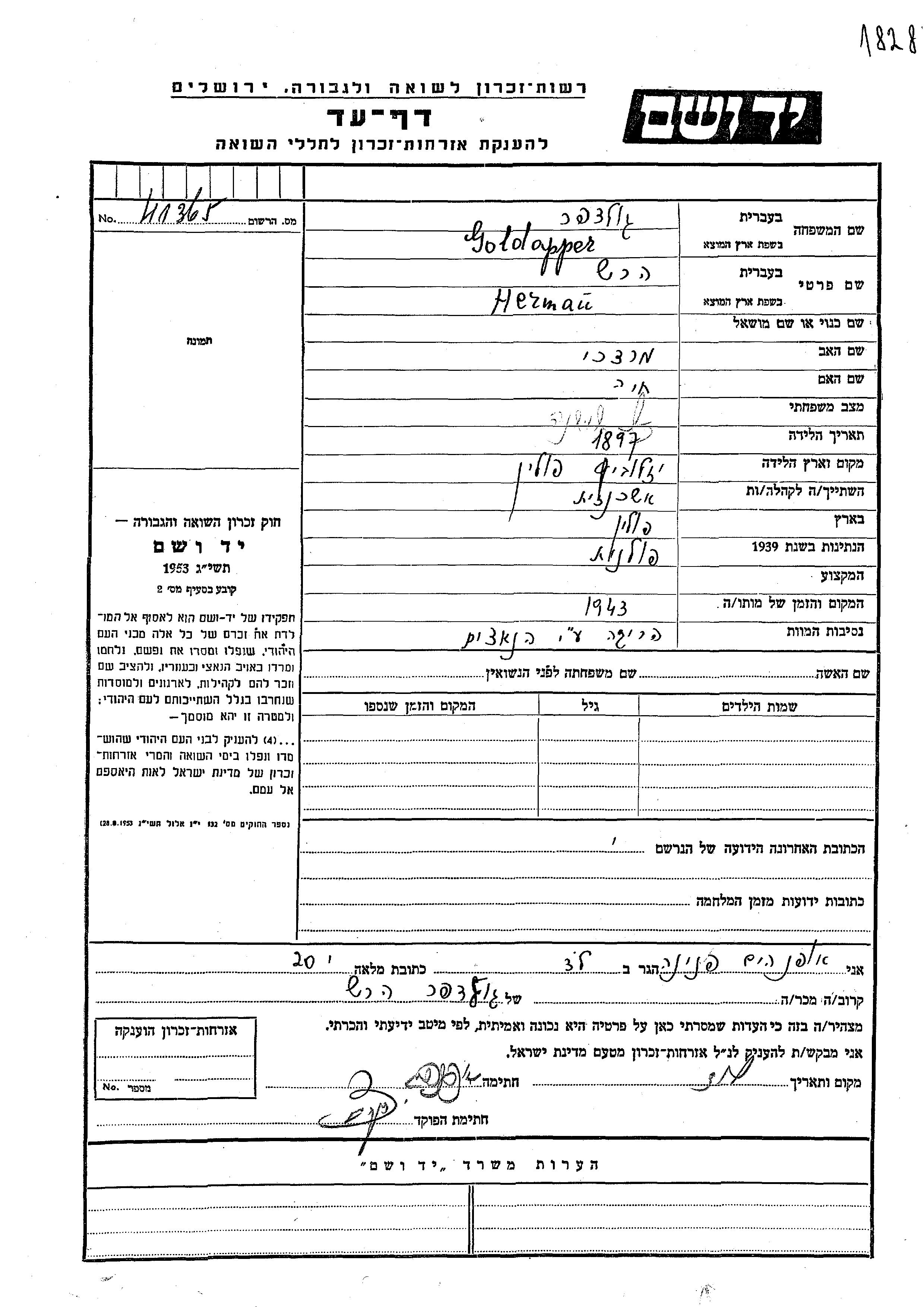 Hersh Herman wurde in der Schoah ermordet. Todesort: unbekannt im Jahr 1943.
