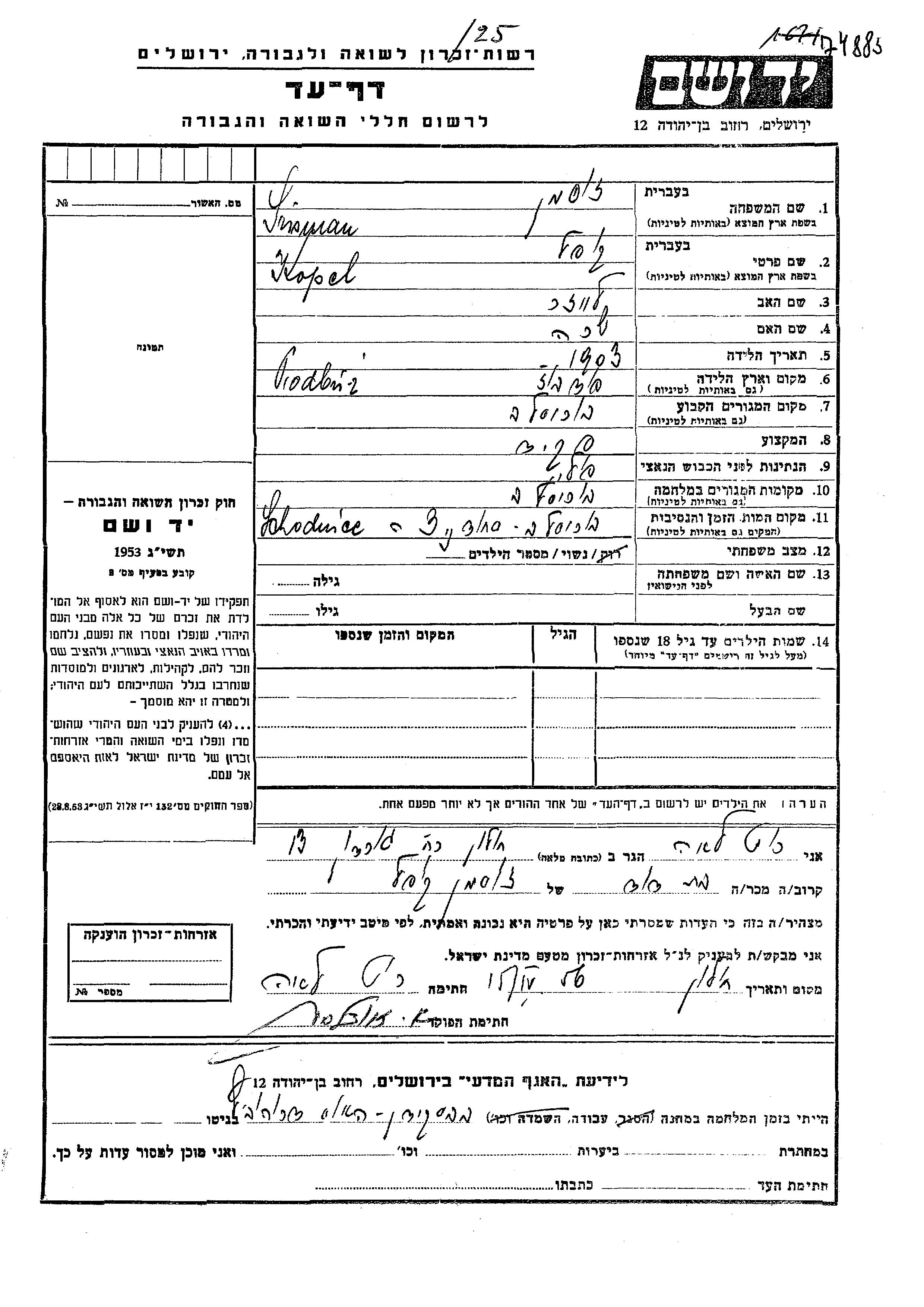 Kopel wurde in der Schoah ermordet. Todesort: Schodnica, Polen.