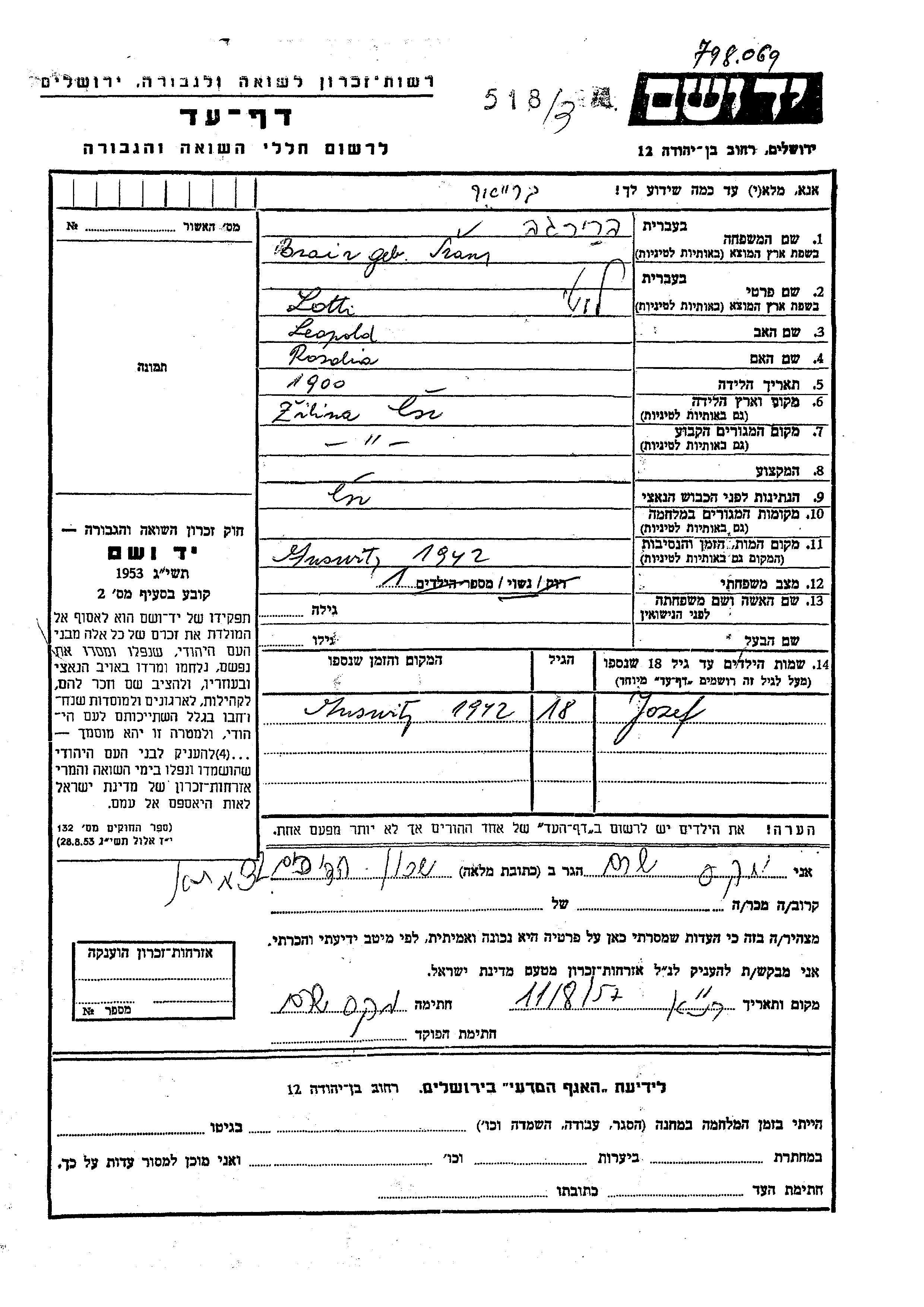 Lotti Brair Brir, geb. Sram wurde im Jahr 1900 in Zilina, Tschechoslowakei geboren. Sie war die Tochter von Leopold und Rosalia. Sie war Verheiratet. Vor dem Zweiten Weltkrieg lebte sie in Zilina, Tschechoslowakei.