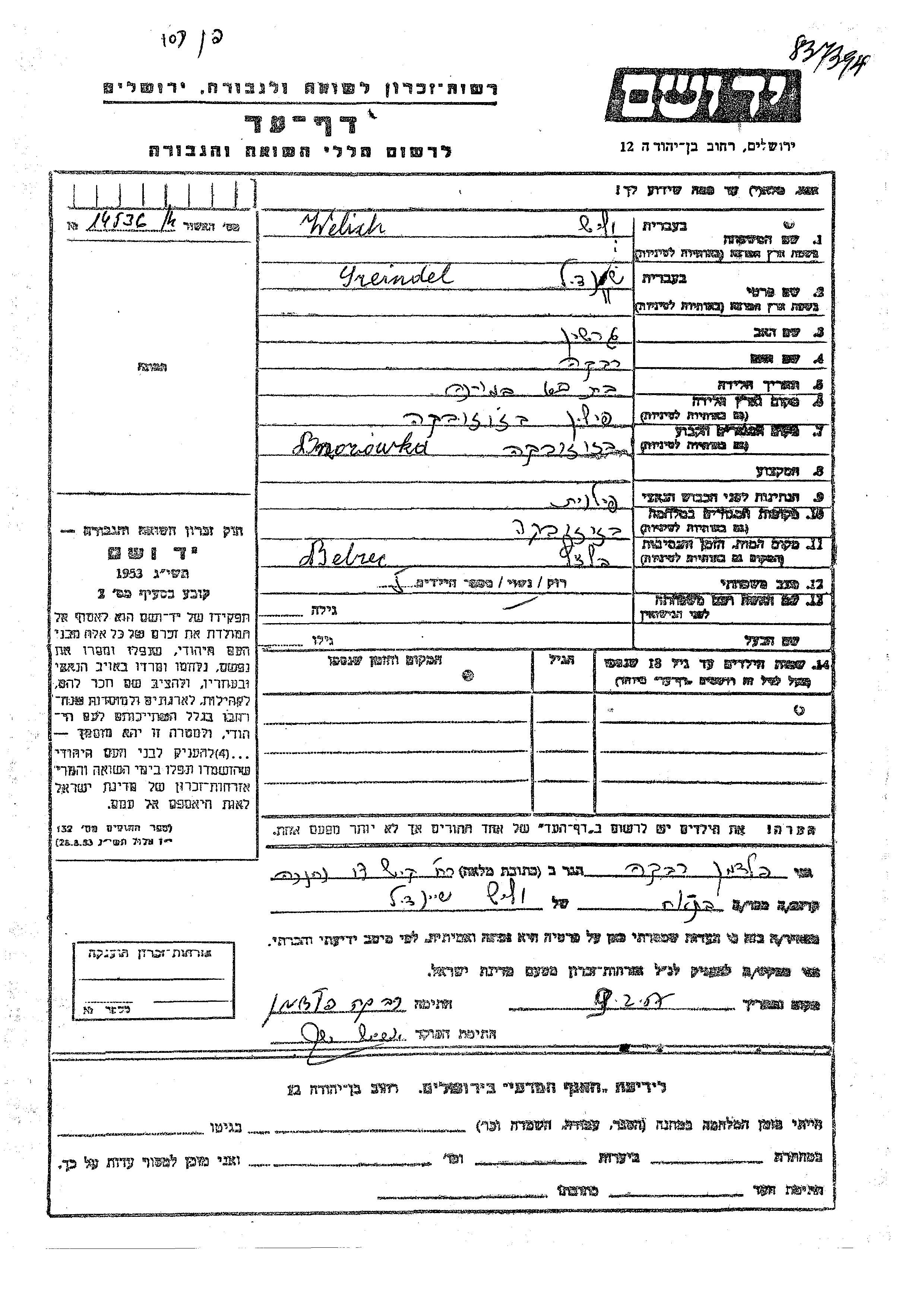 Welisch Szeindel Brzozowka, Polen Gedenkblatt