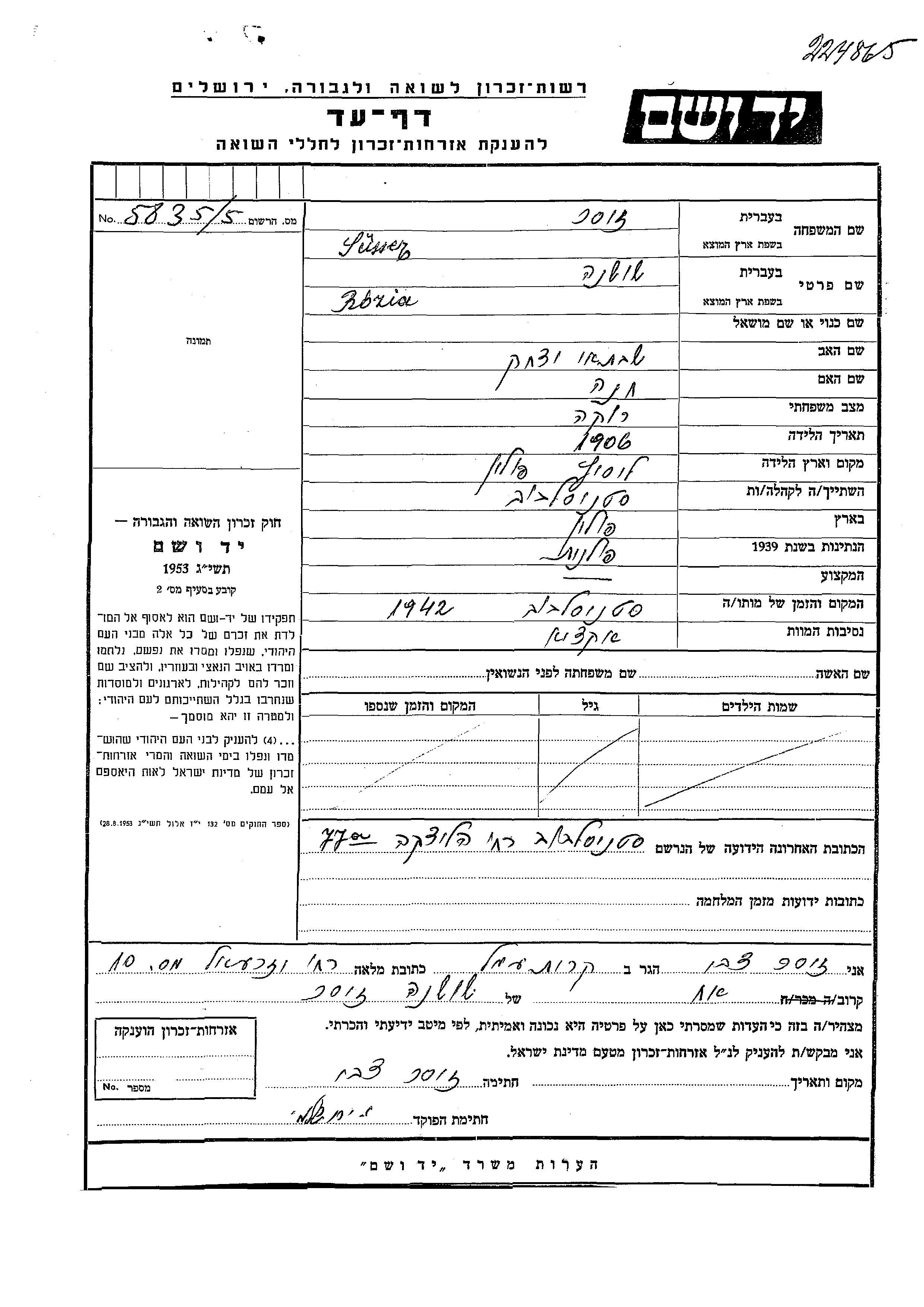 Rozia Shoshana wurde in der Schoah ermordet. Todesort: Stanislawow, Polen im Jahr 1942.