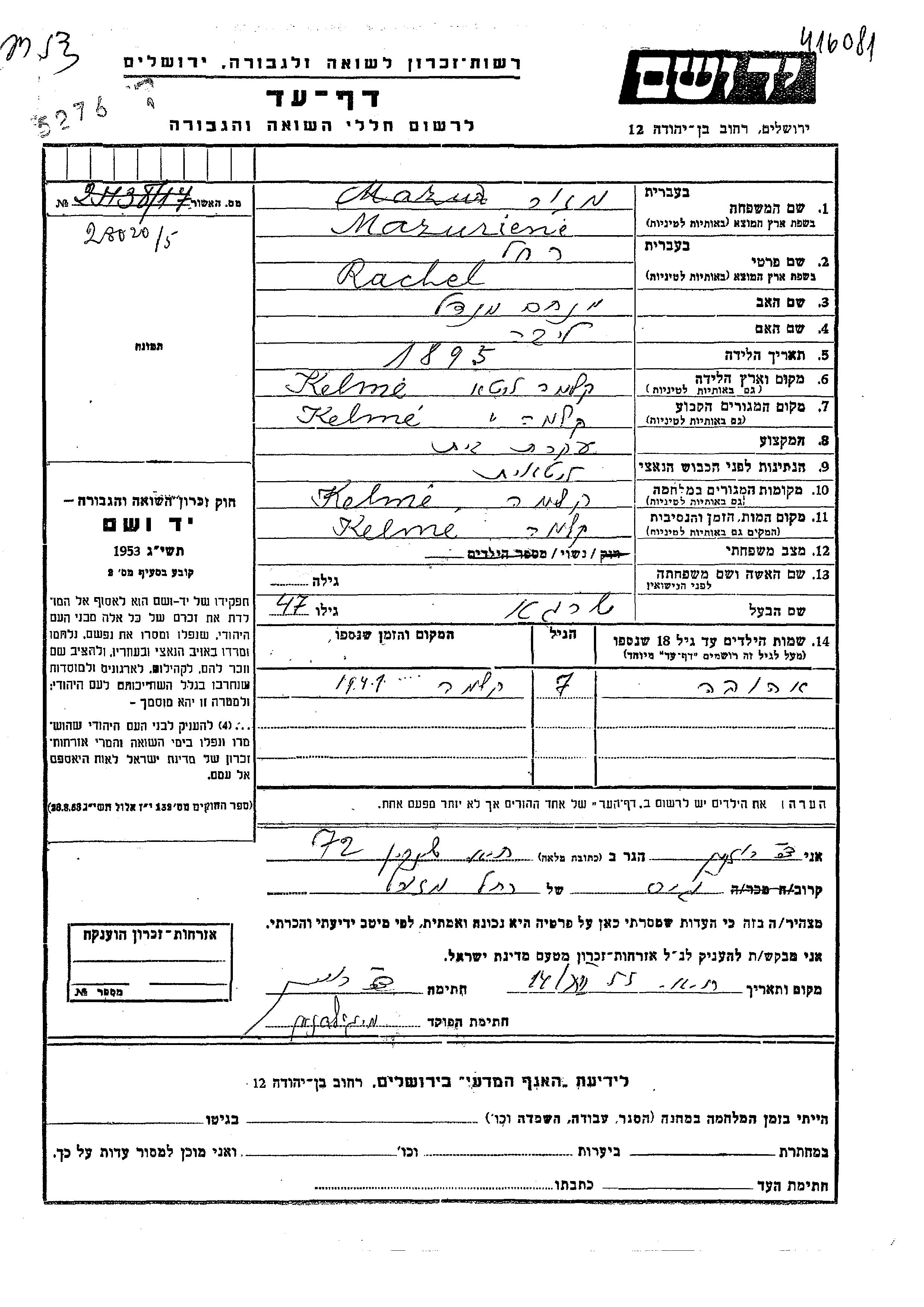 Rachel wurde in der Schoah ermordet. Todesort: Kelme, Litauen.