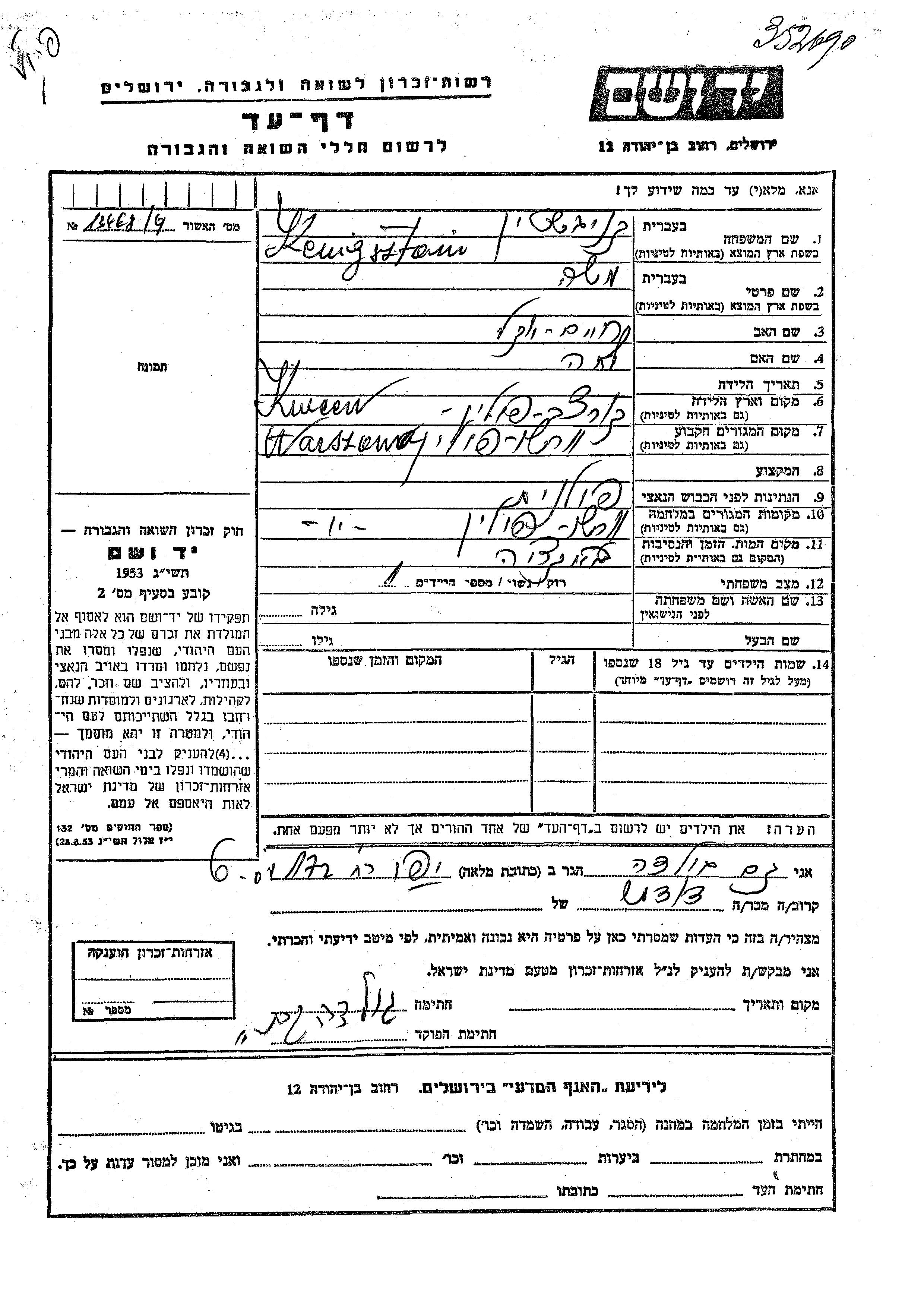 Kenigsztain Moshe Warszawa, Polen Gedenkblatt