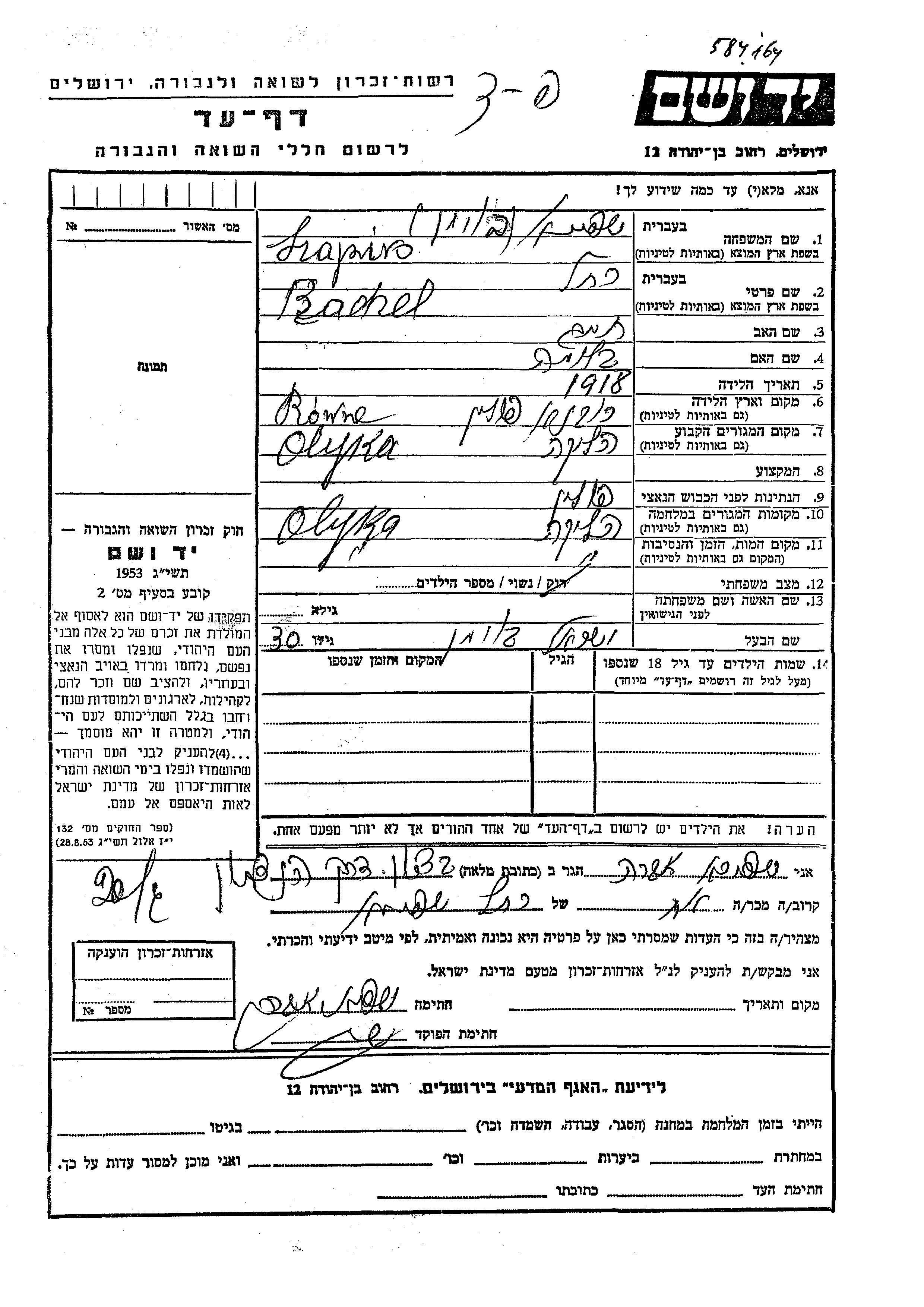 Szapiro Boiman Rachel 1918 Ołyka, Polen Gedenkblatt