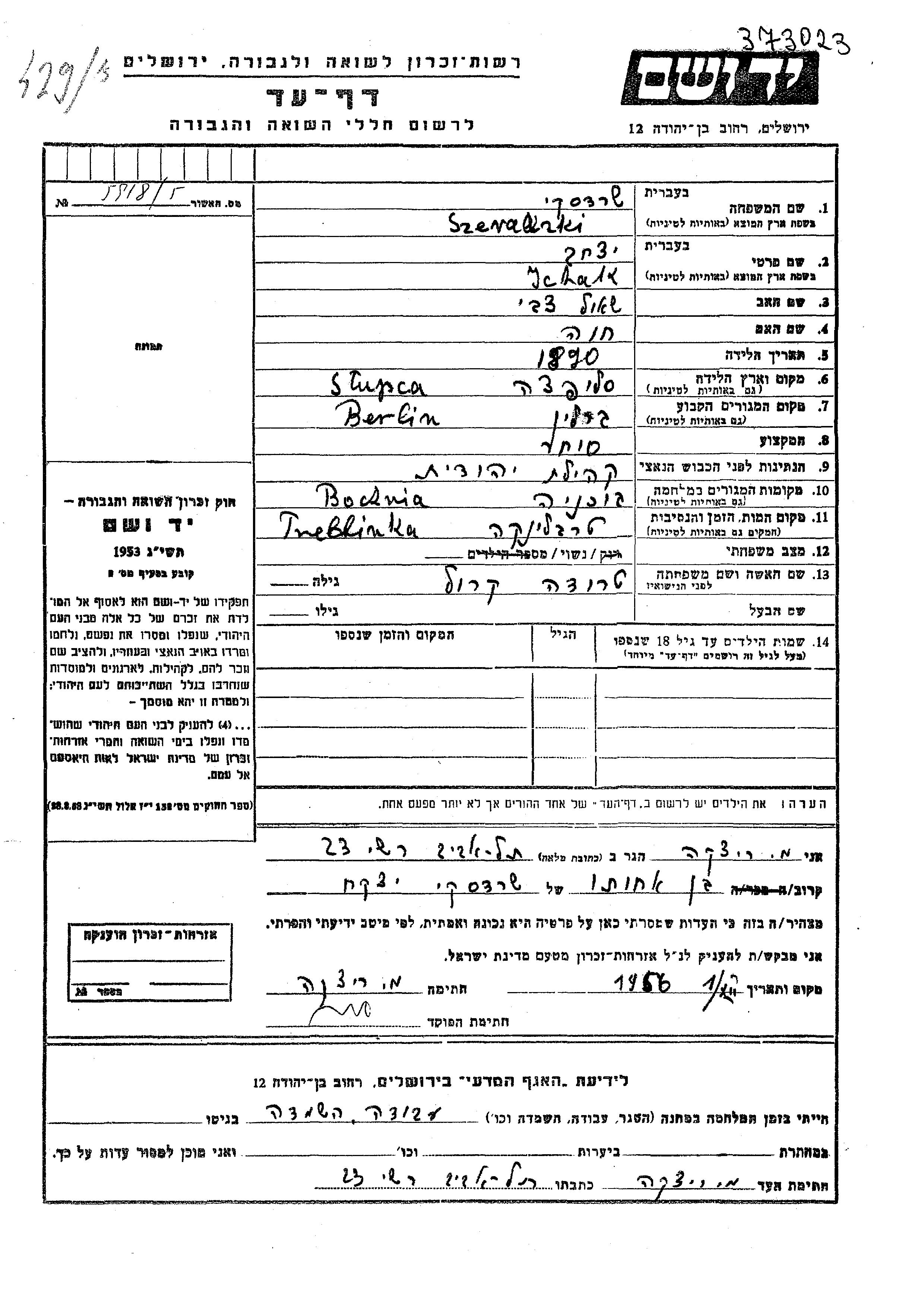 Szeradzki Ichak 1890 Berlin, Deutsches Reich Gedenkblatt