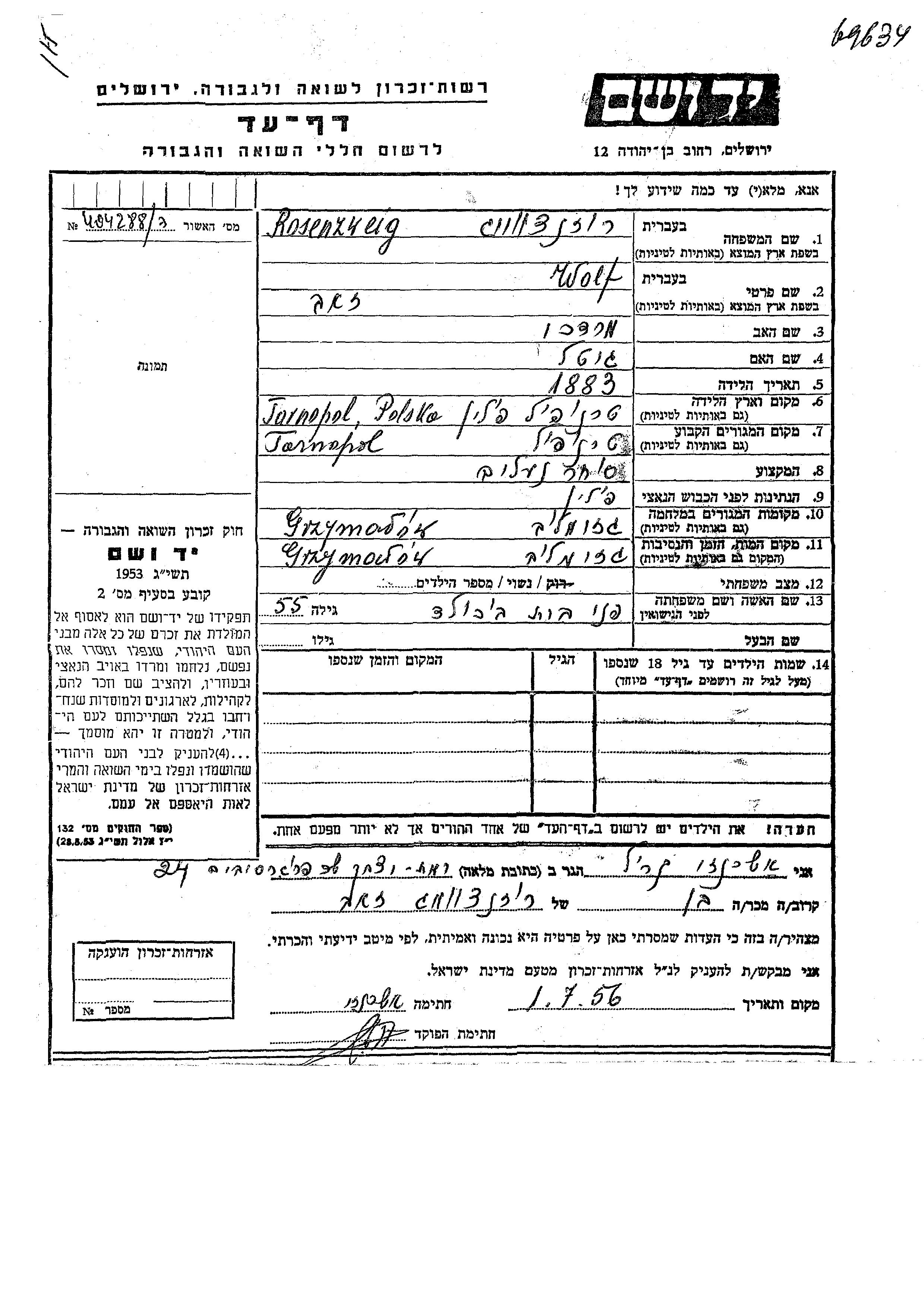 Wolf Zeev wurde in der Schoah ermordet. Todesort: Grzymalow, Polen.
