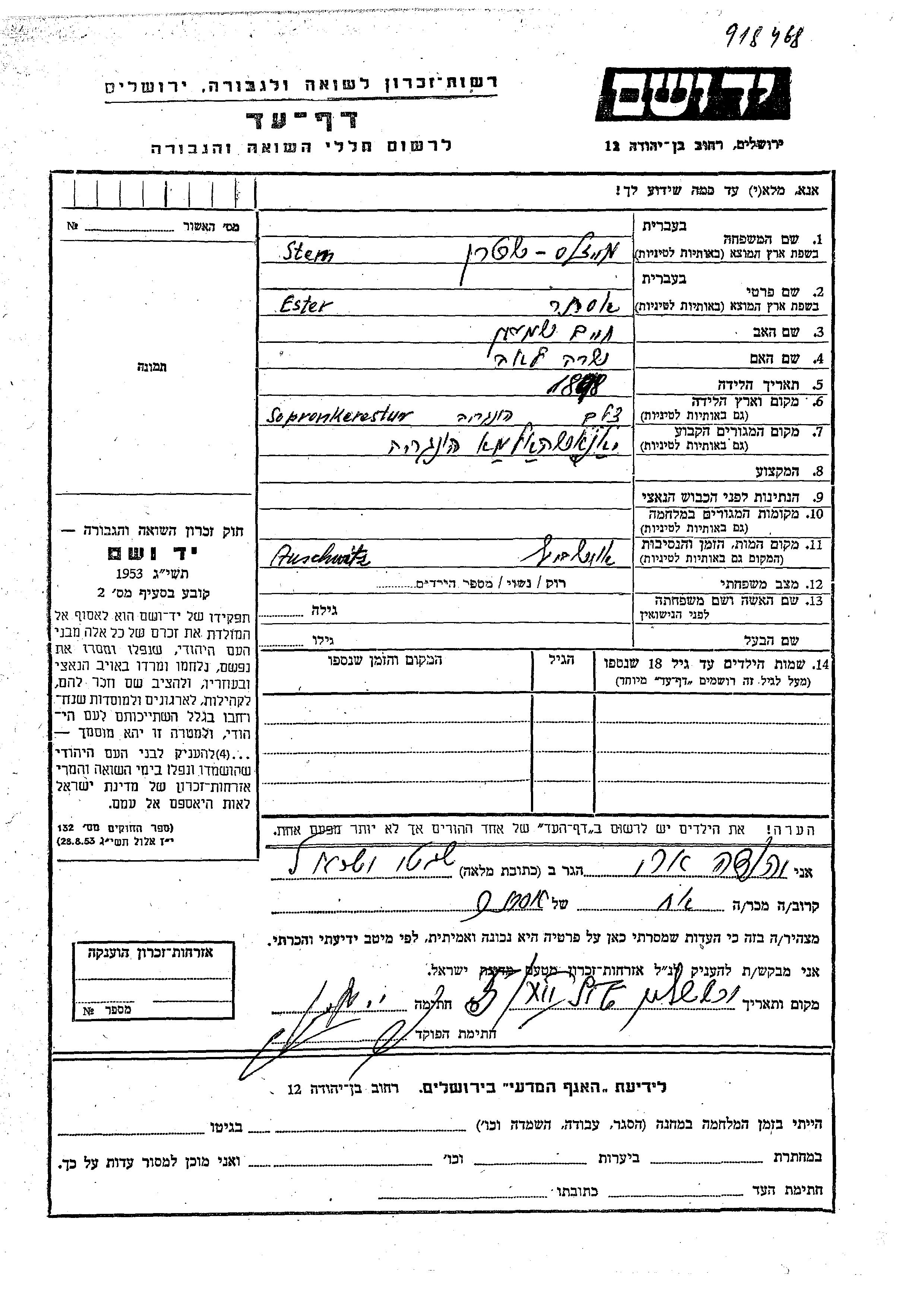 Suche nach einem Todesjahr im Zeitraum der Holocaust: 1933 bis 1945. Bitte wählen Sie 'Exakt' im Auswahlmenü, um nur nach einem einzelnen Jahr zu suchen, alternativ können Sie die flexibleren Optionen '+/- 2 Jahre' oder '+/- 5 Jahre' wählen.