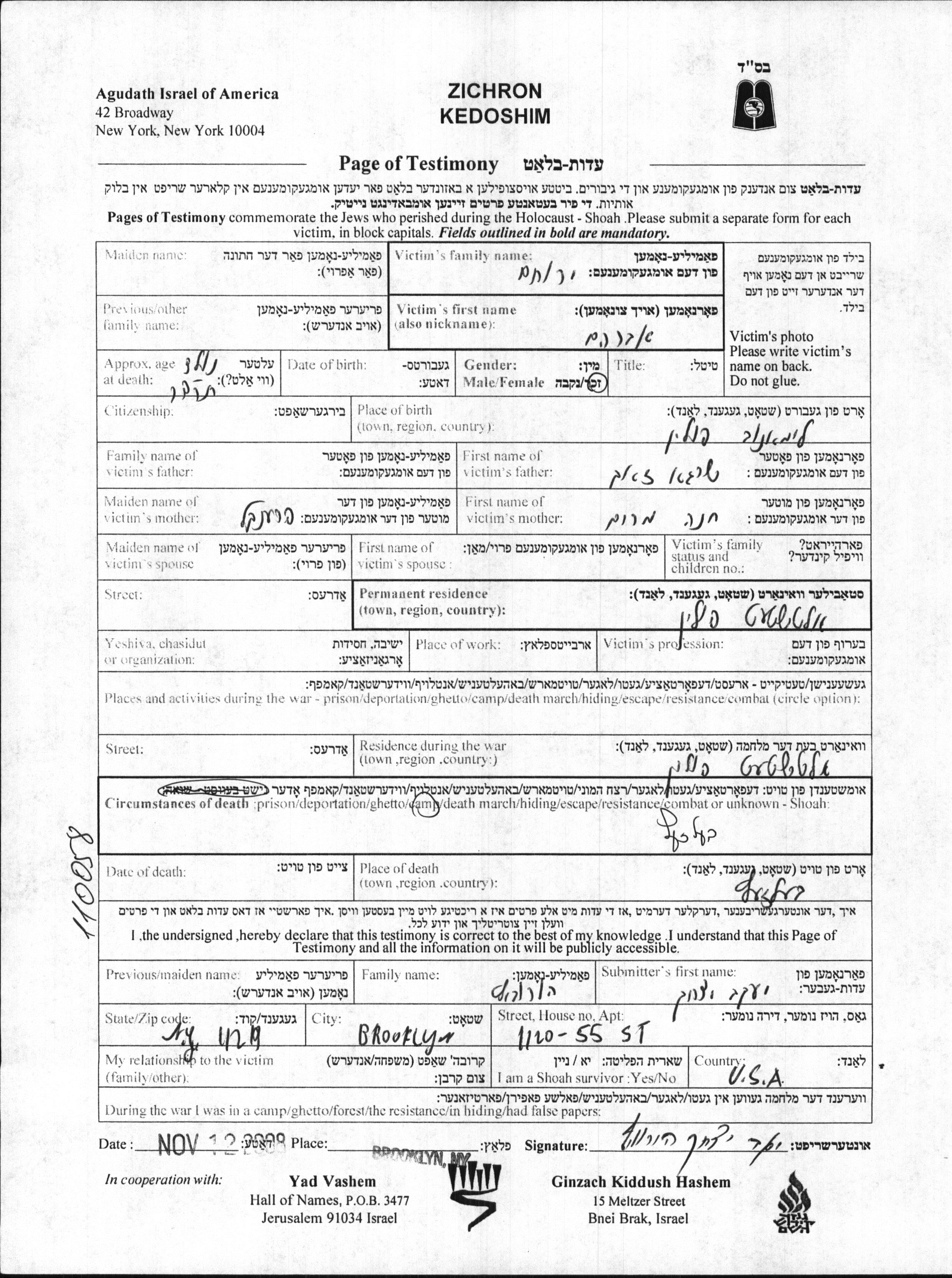 Avraham wurde in der Schoah ermordet. Todesort: Belzec, Polen.