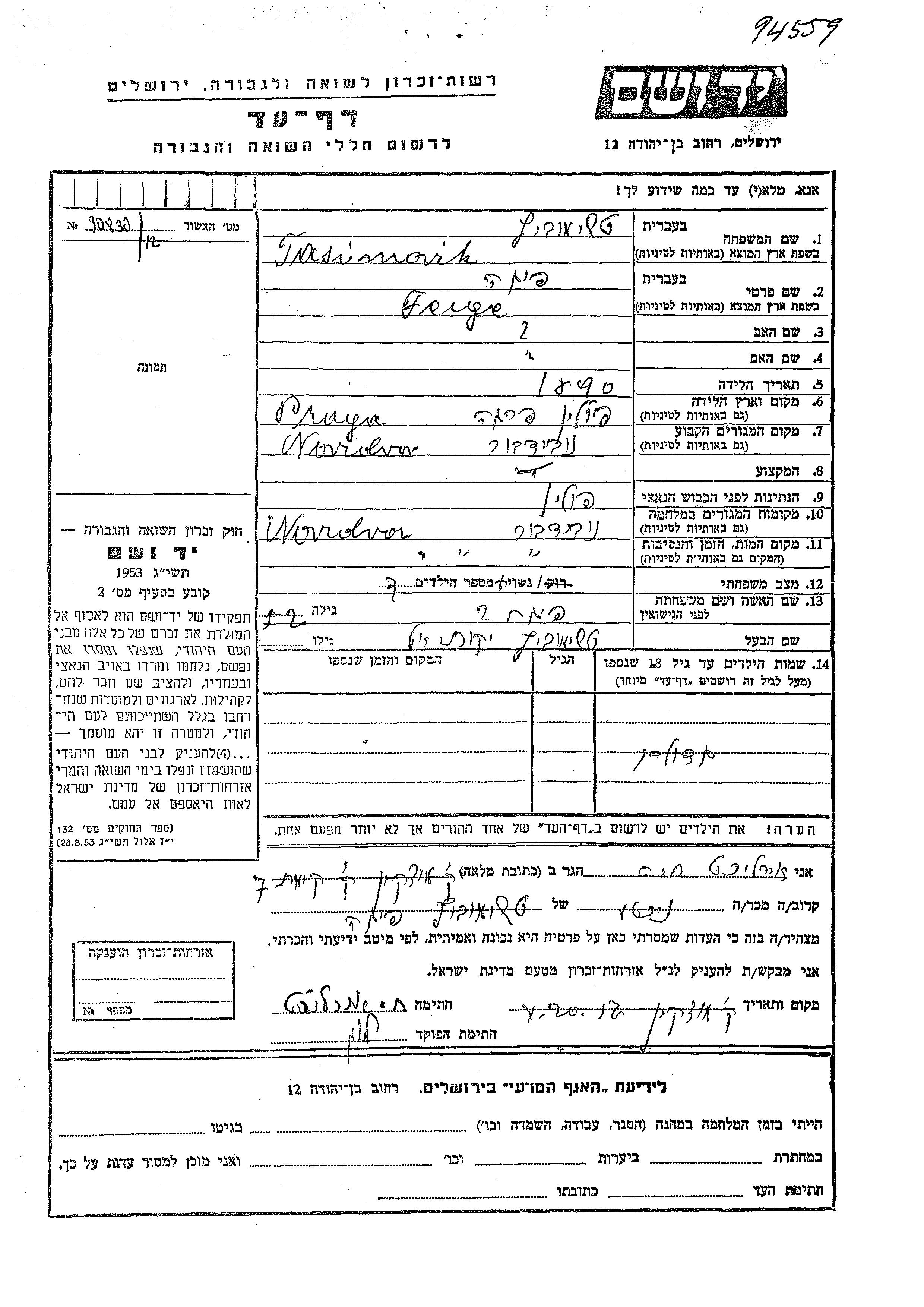 Feiga Tasimovitz wurde im Jahr 1890 in Praga, Polen geboren. Sie war mit Yekutiel Verheiratet. Vor dem Zweiten Weltkrieg lebte sie in Nowy Dwor, Polen. Während des Krieges war sie in Nowy Dwor, Polen.