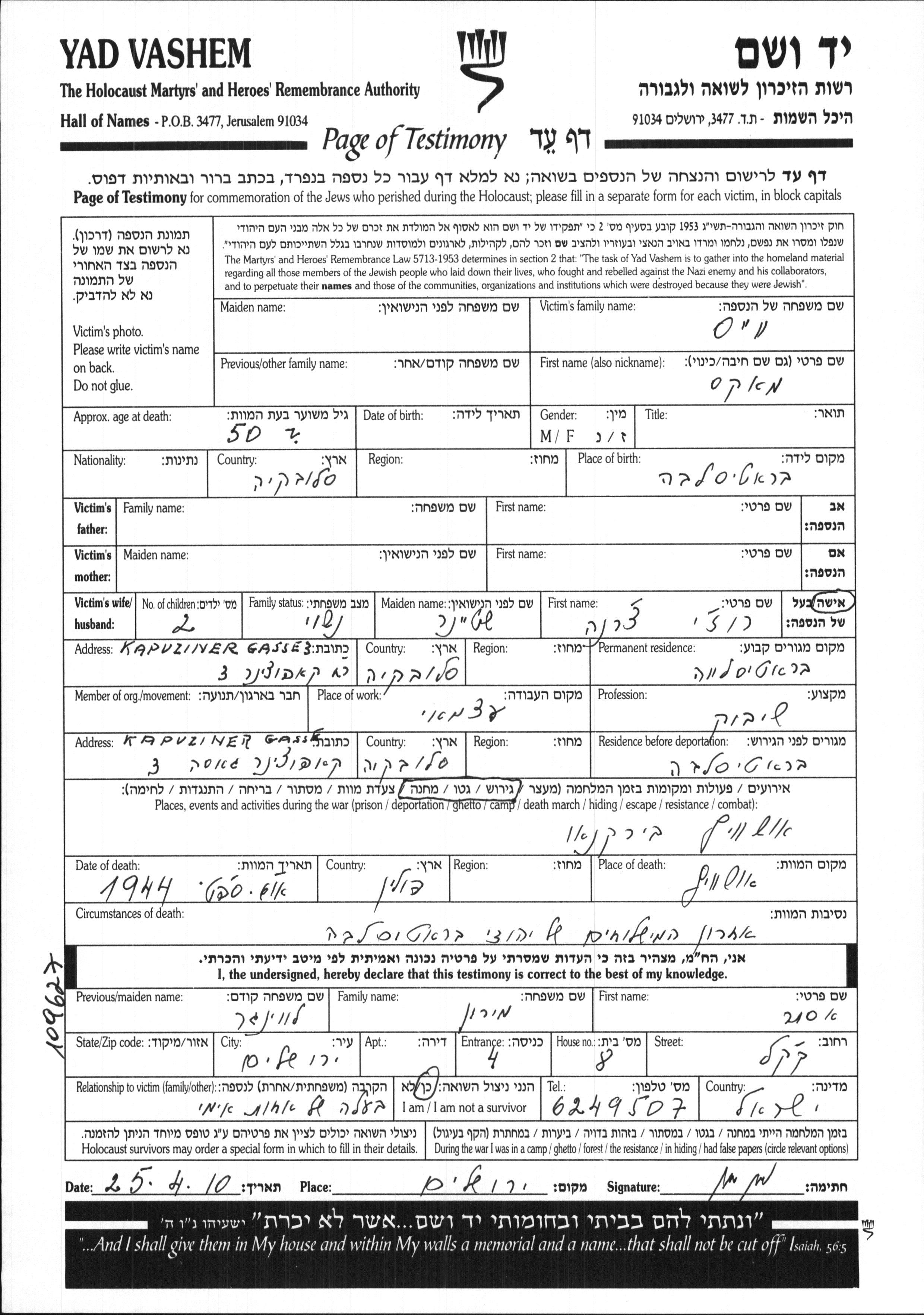 Maks Vais wurde in Bratislava, Tschechoslowakei geboren. Er war Selbständig und mit Rozi Charna, geb. Shteiner Verheiratet. Vor dem Zweiten Weltkrieg lebte er in Bratislava, Tschechoslowakei. Während des Krieges war er in Bratislava, Tschechoslowakei.