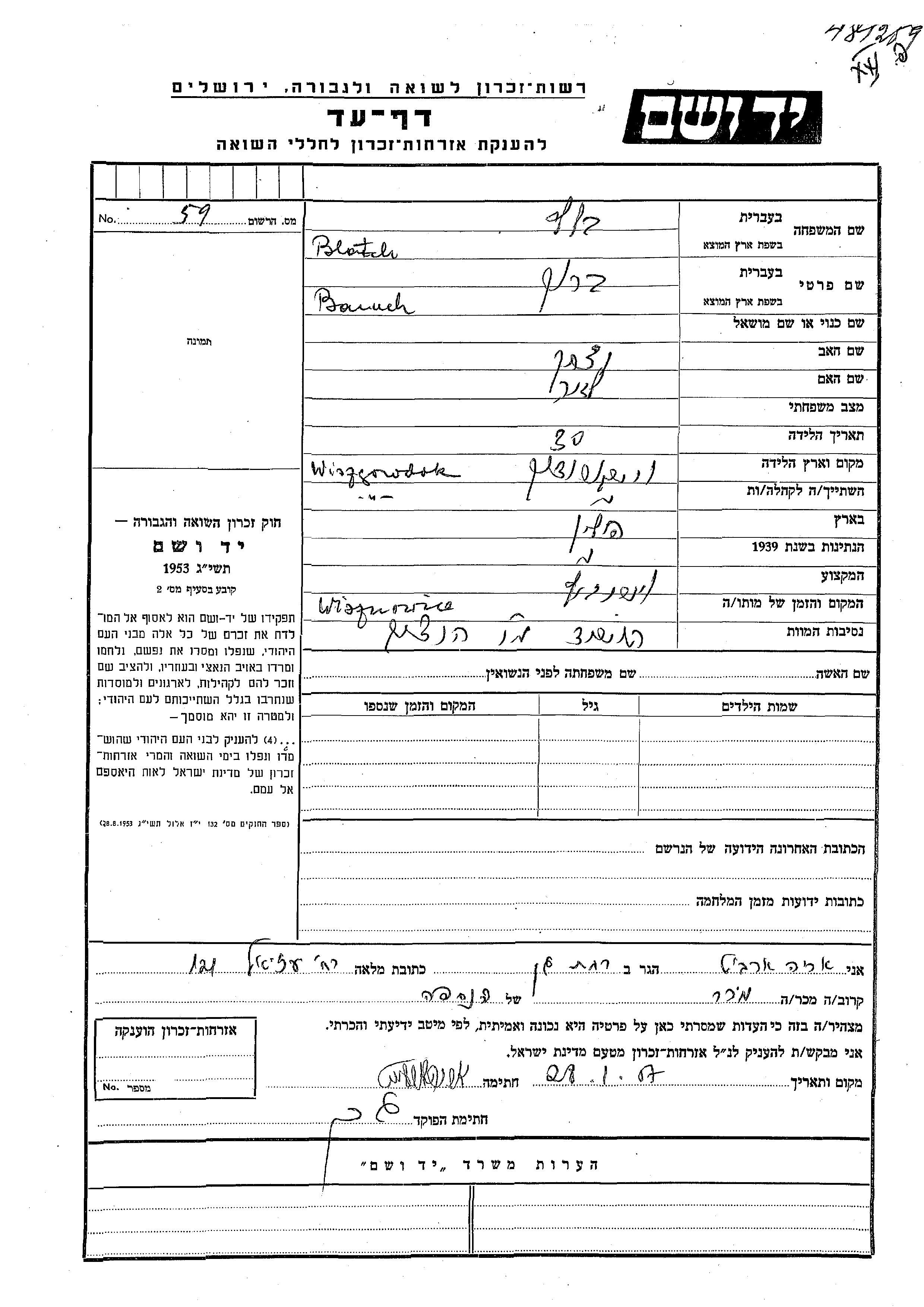Blatch Beltz Baruch Wyszogrodek, Polen Gedenkblatt