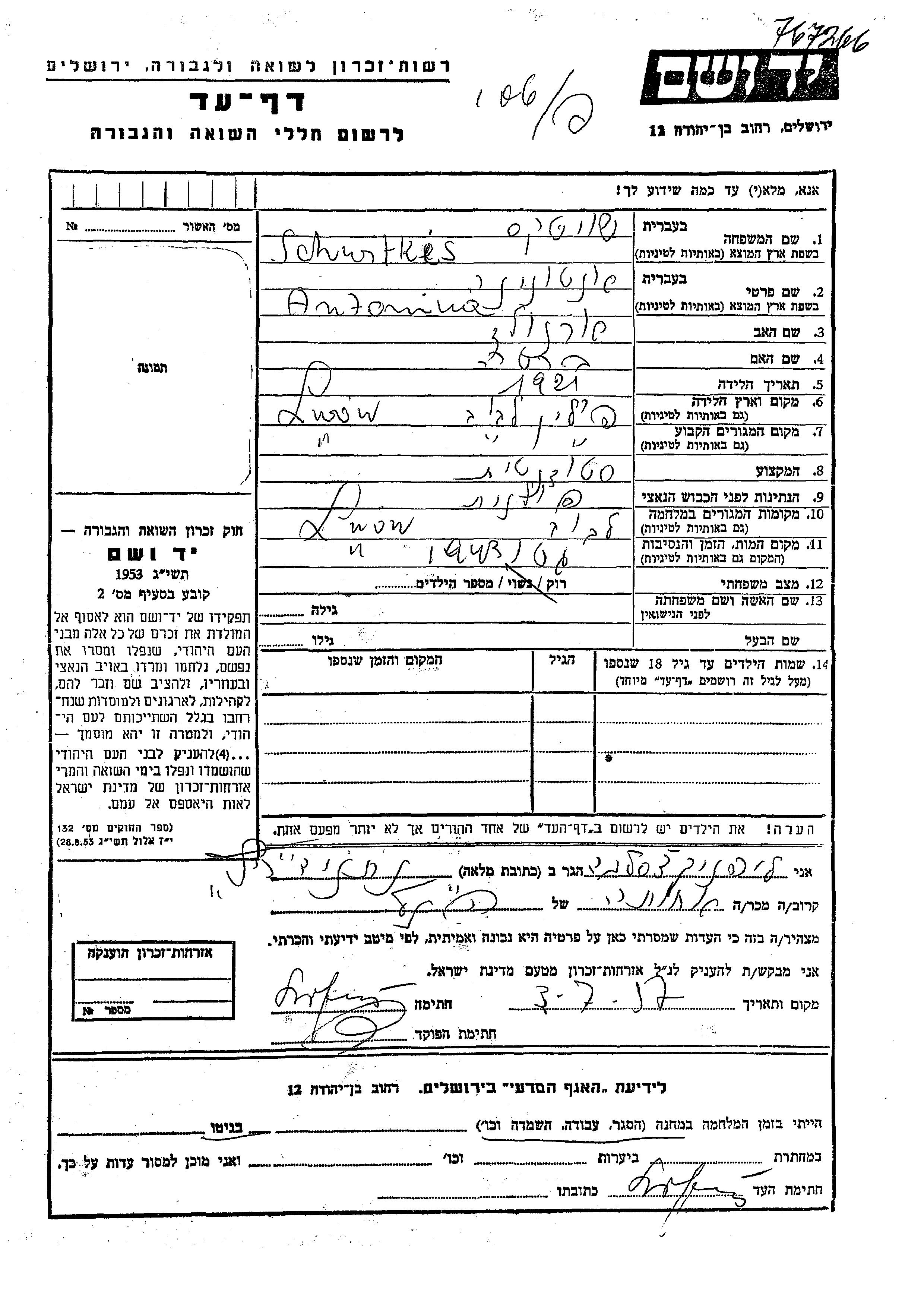 Antonina Schwitkis wurde im Jahr 1921 in Lwow, Polen geboren. Sie war die Tochter von Arnold und Berta. Sie war Student und Ledig. Vor dem Zweiten Weltkrieg lebte sie in Lwow, Polen. Während des Krieges war sie in Lwow, Polen.