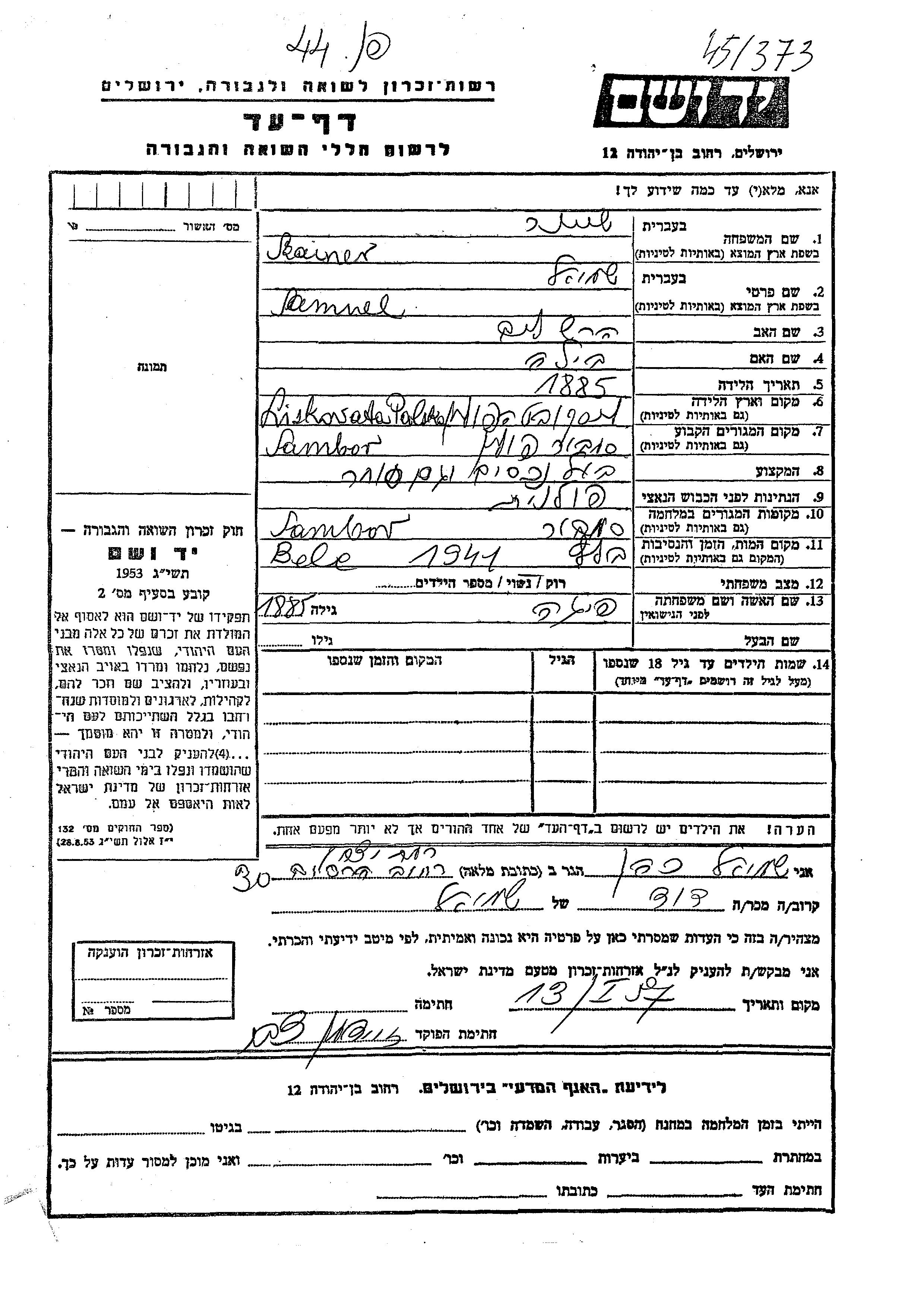 Shmuel wurde in der Schoah ermordet. Todesort: Belc, Polen im Jahr 1941.