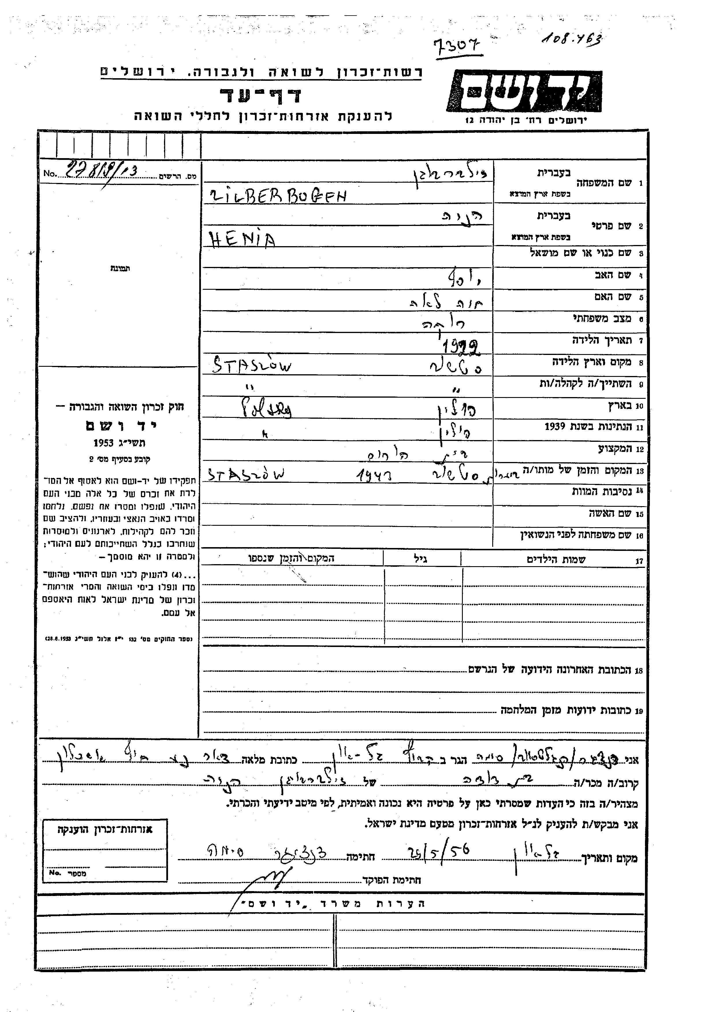 Henia Zilberbogen wurde im Jahr 1922 in Staszow, Polen geboren. Sie war die Tochter von Yosef und Khaia Lea.