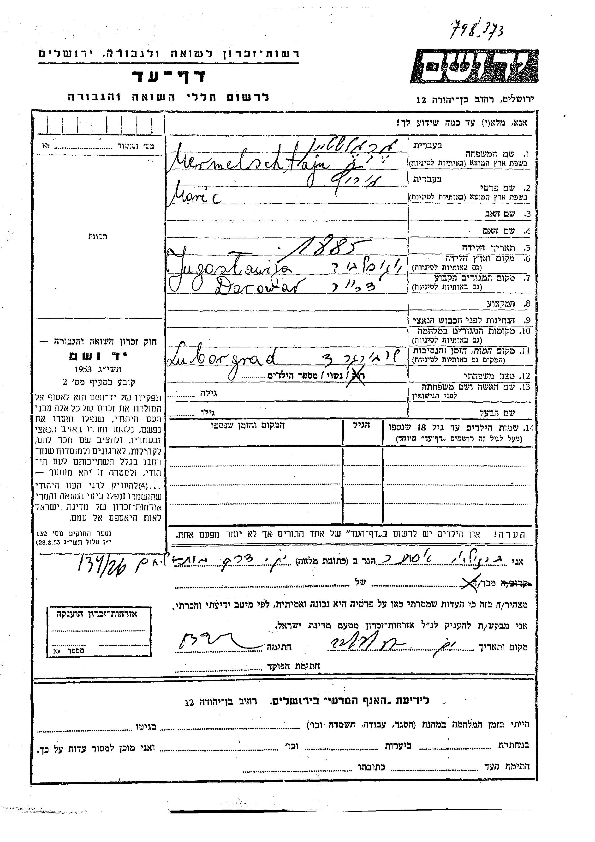 Moric wurde in der Schoah ermordet. Todesort: Loborgrad, Jugoslawien.