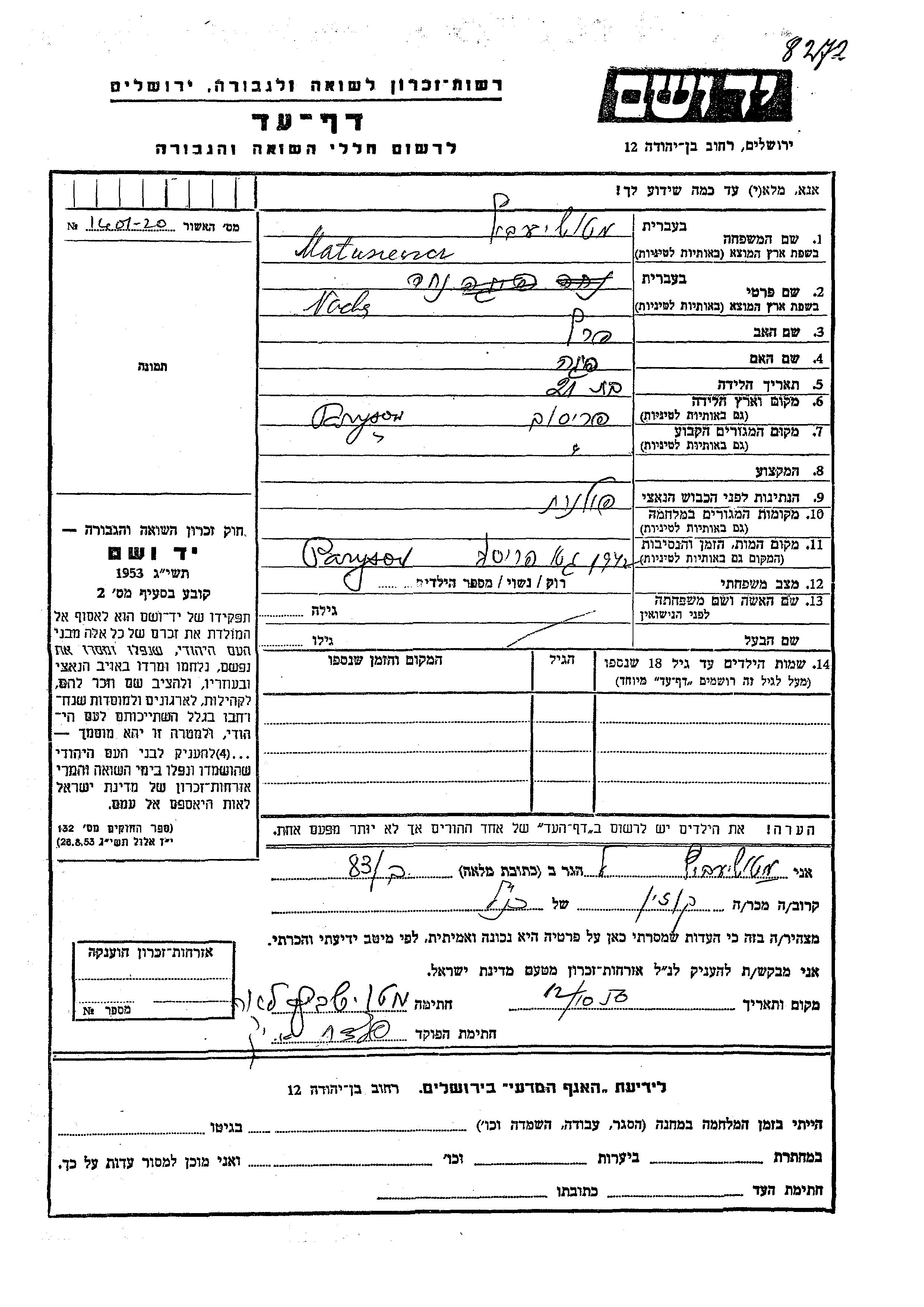 Matusievicz Necha Parysow, Polen Gedenkblatt