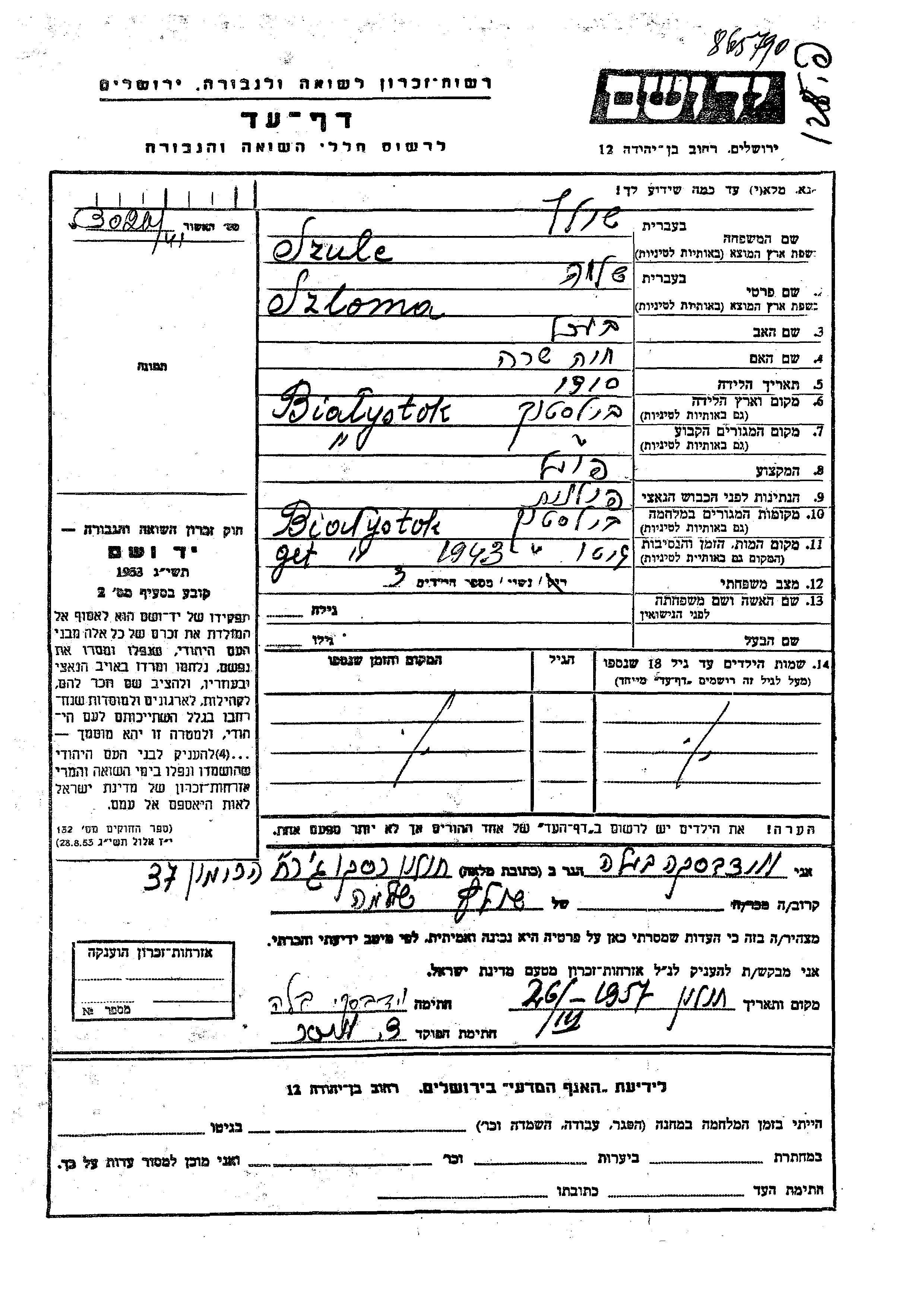 Szloma wurde in der Schoah ermordet. Todesort: Bialystok, Polen im Jahr 1943.