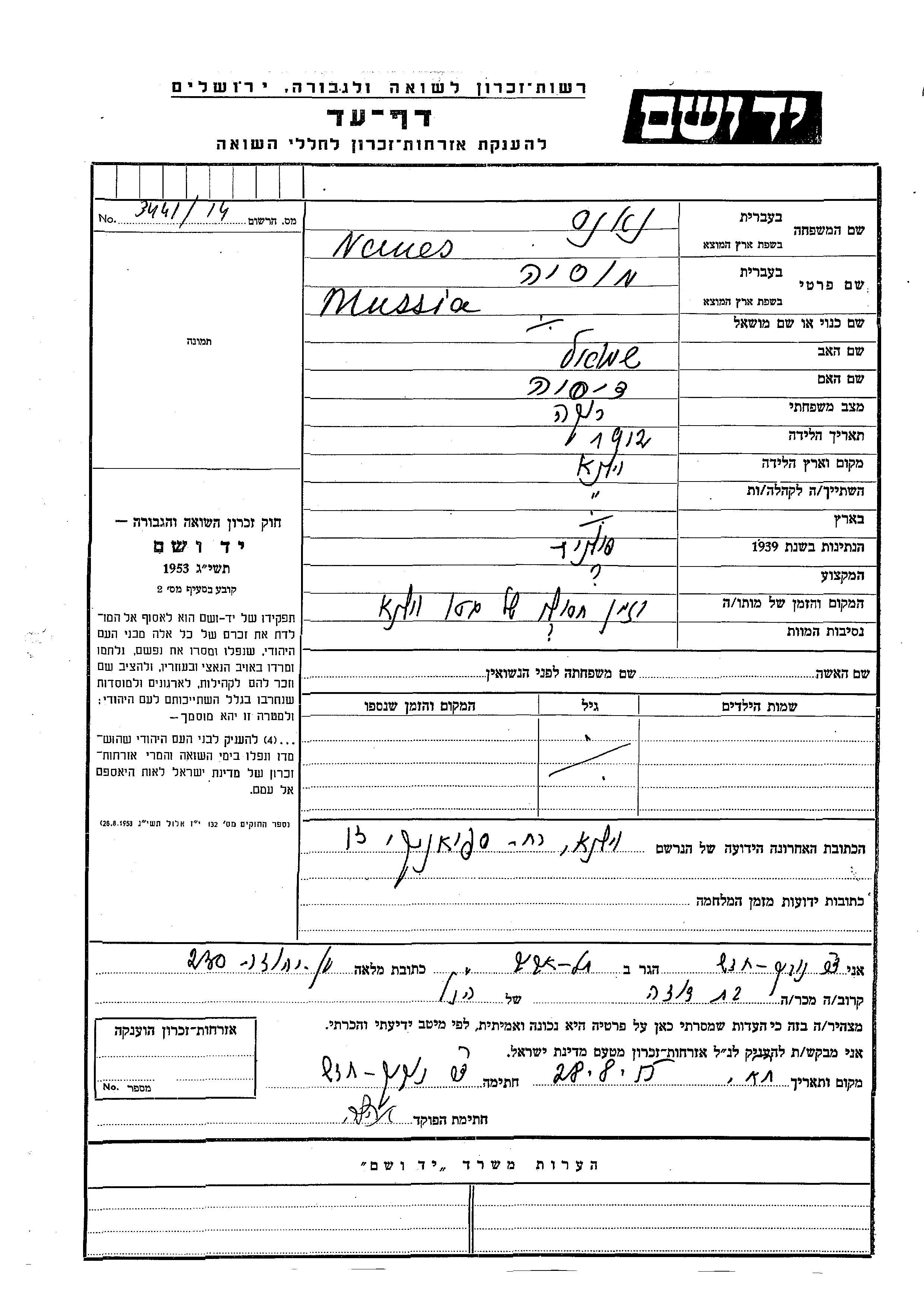 Mussia wurde in der Schoah ermordet. Todesort: Wilno, Polen.