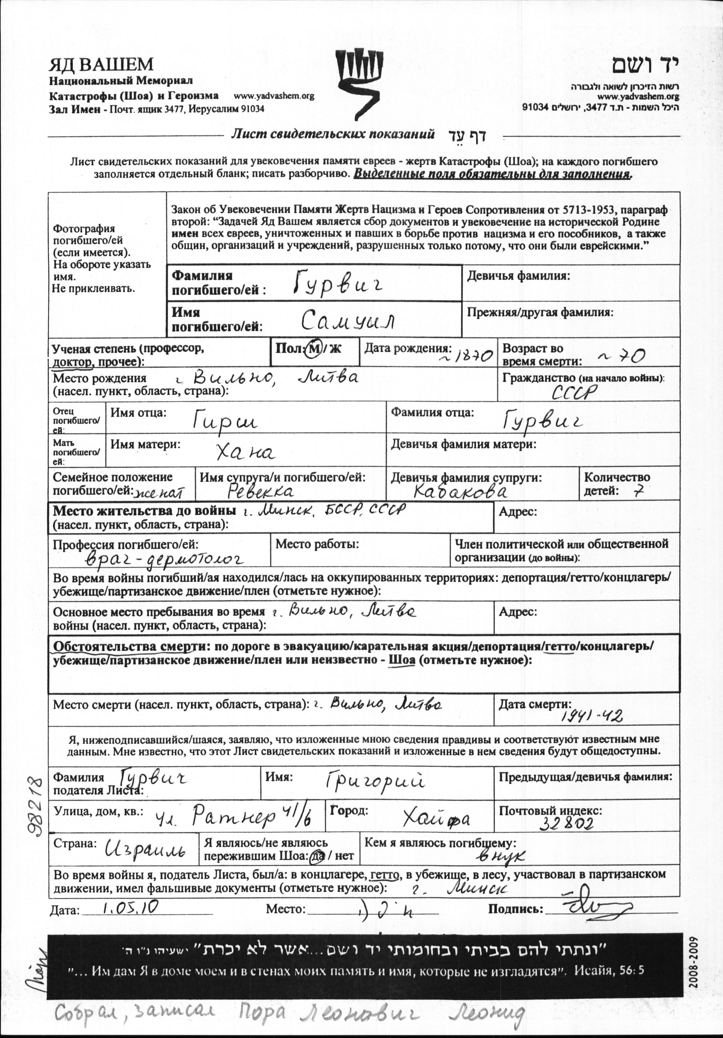 Suche nach einem Todesjahr im Zeitraum der Holocaust: 1933 bis 1945. Bitte wählen Sie 'Exakt' im Auswahlmenü, um nur nach einem einzelnen Jahr zu suchen, alternativ können Sie die flexibleren Optionen '+/- 2 Jahre' oder '+/- 5 Jahre' wählen.