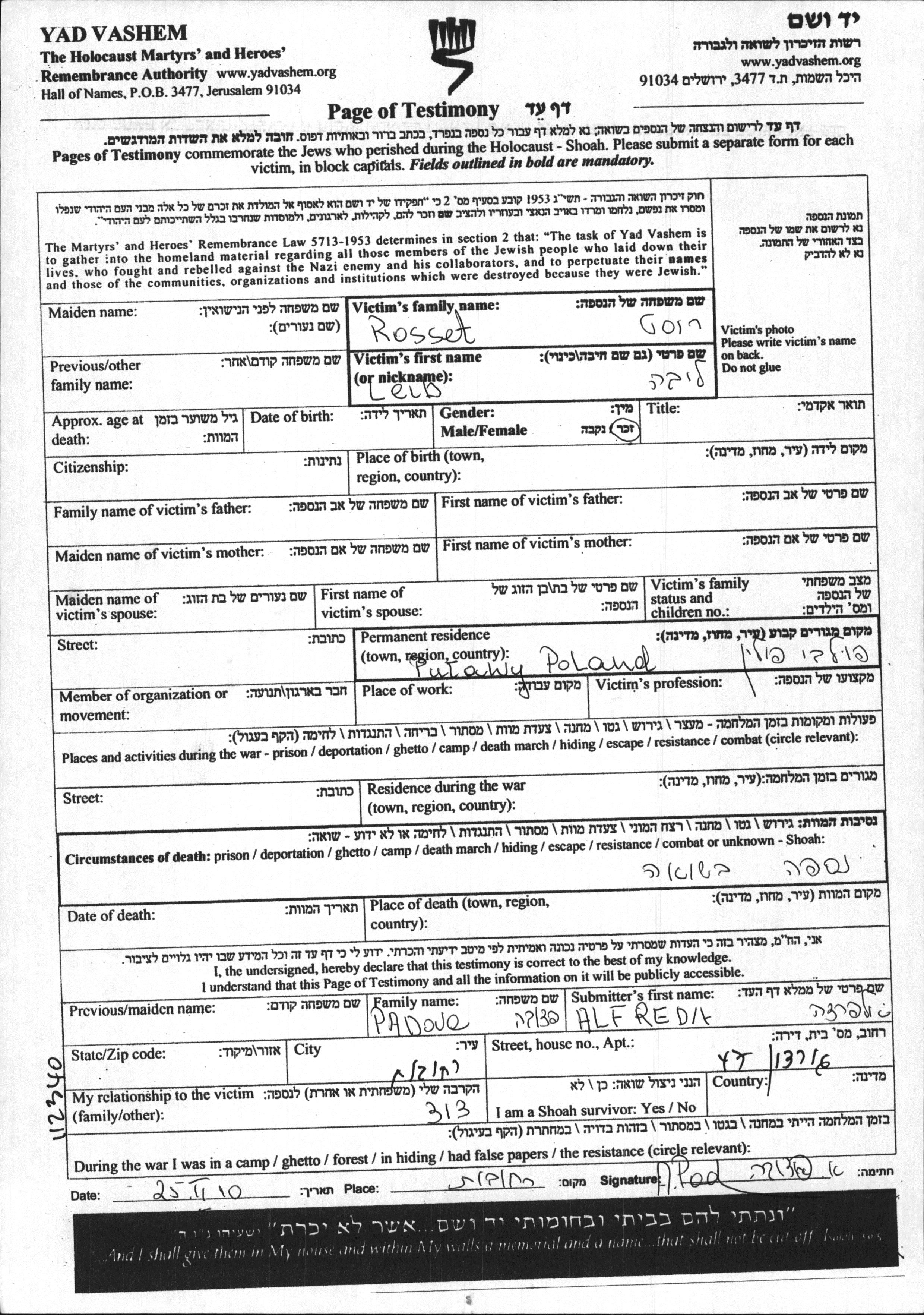 Leib Liba Rosset. Vor dem Zweiten Weltkrieg lebte er in Pulawy, Polen.