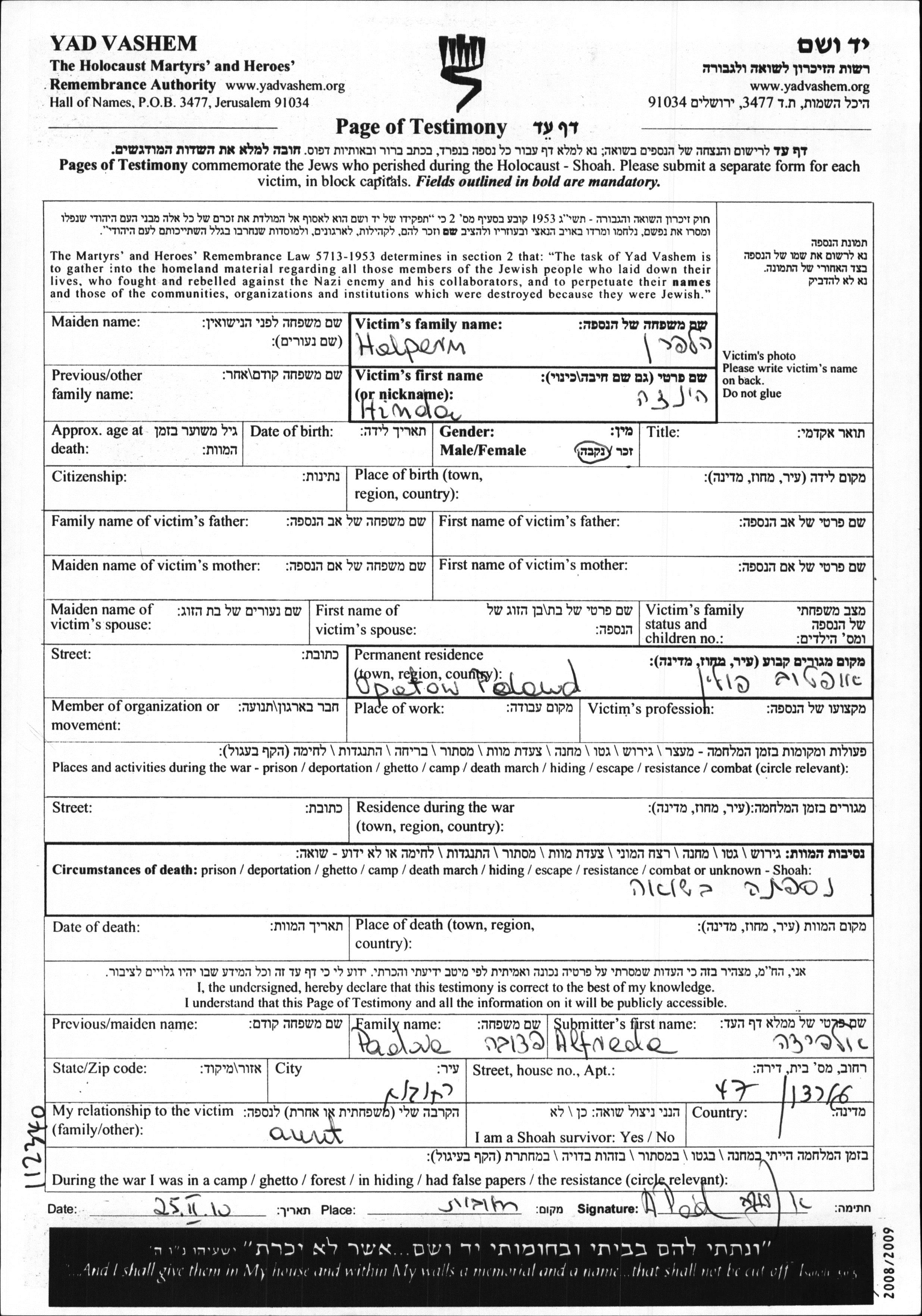 Halpern Hinda Opatow, Polen Gedenkblatt