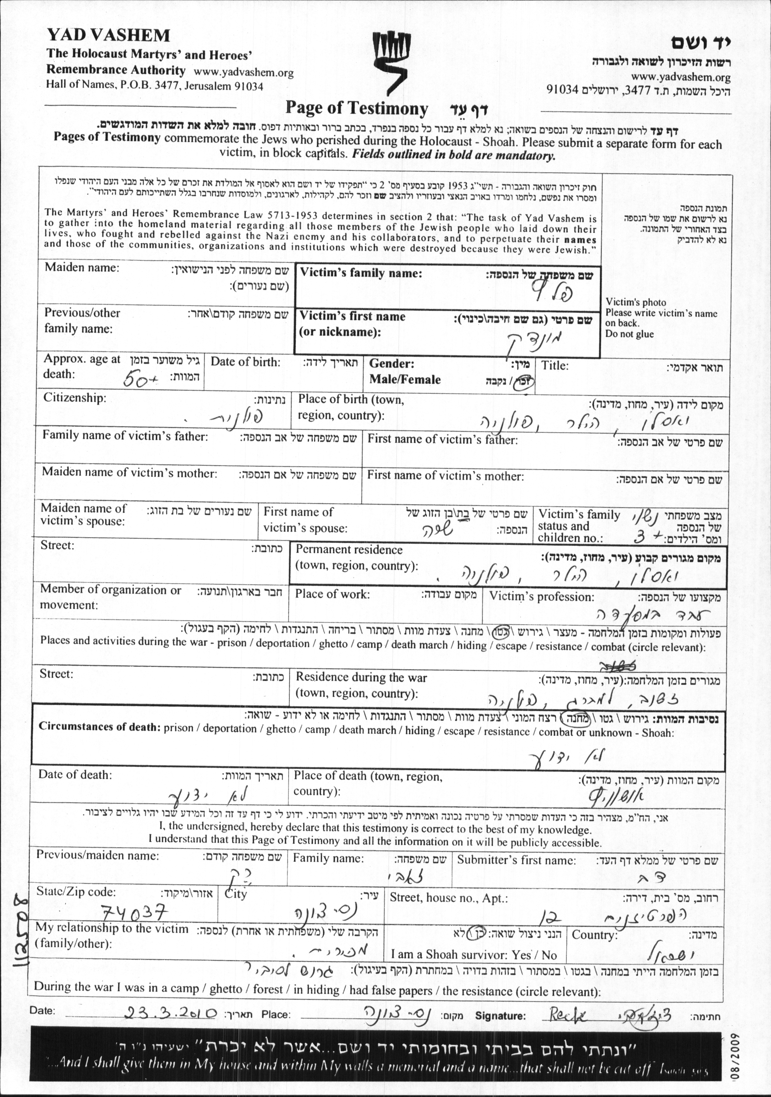 Peltz Mundek Jaslo, Polen Gedenkblatt